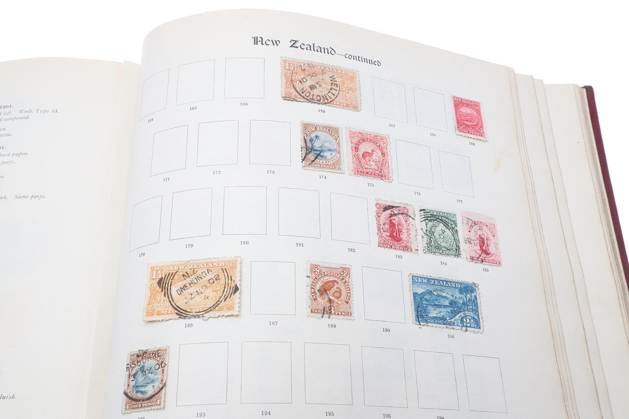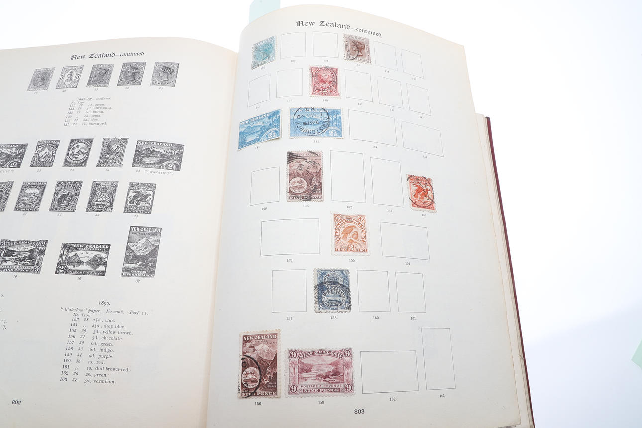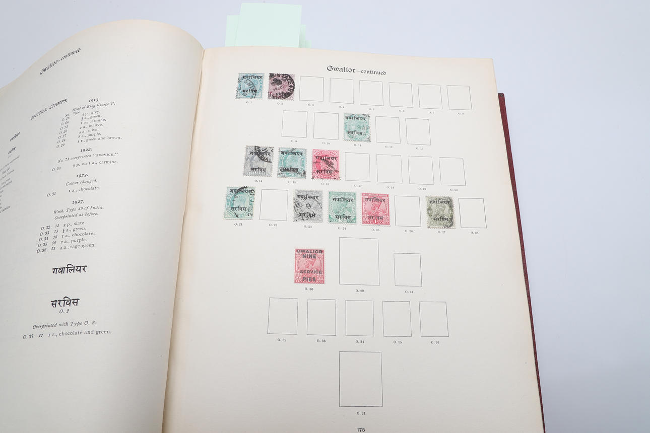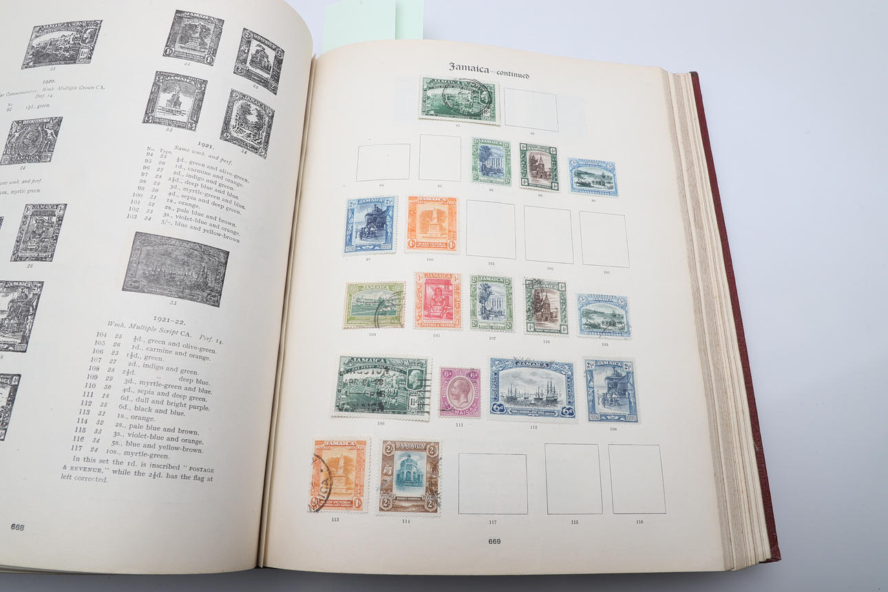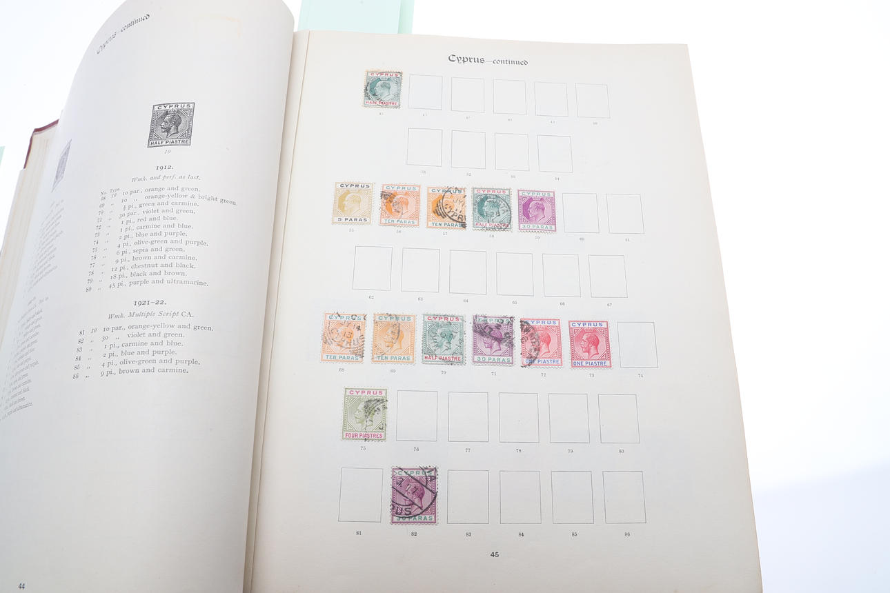A large partially filled album with Great Britain and Commonwealth stamps, including 2d blue and other Victorian and 20thc stamps (Seahorse stamps, Empire Exhibition 1925 etc), used and mint 19thc and 20thc stamps including Cyprus, Gibraltar, India, Malta, Ceylon, African Countries, Canada, Newfoundland, Australia, West Indies, and many more. Album 29cms by 25cms.