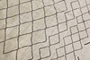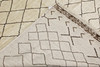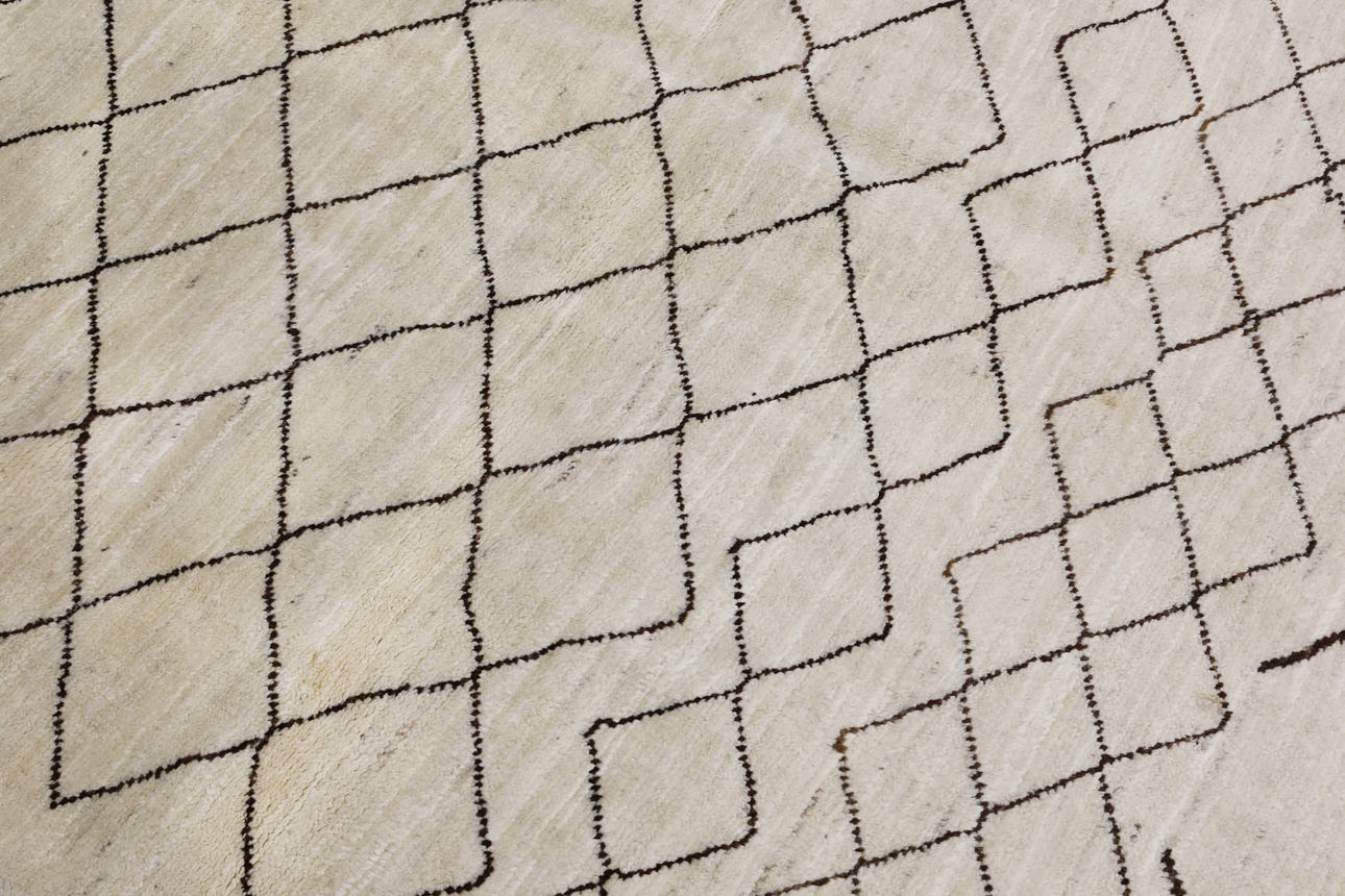Morocco with a bright bottom and an open center field with a geometric checkerboard pattern in a dark contrasting color. The forelock is made of wool and the warp is of cotton.