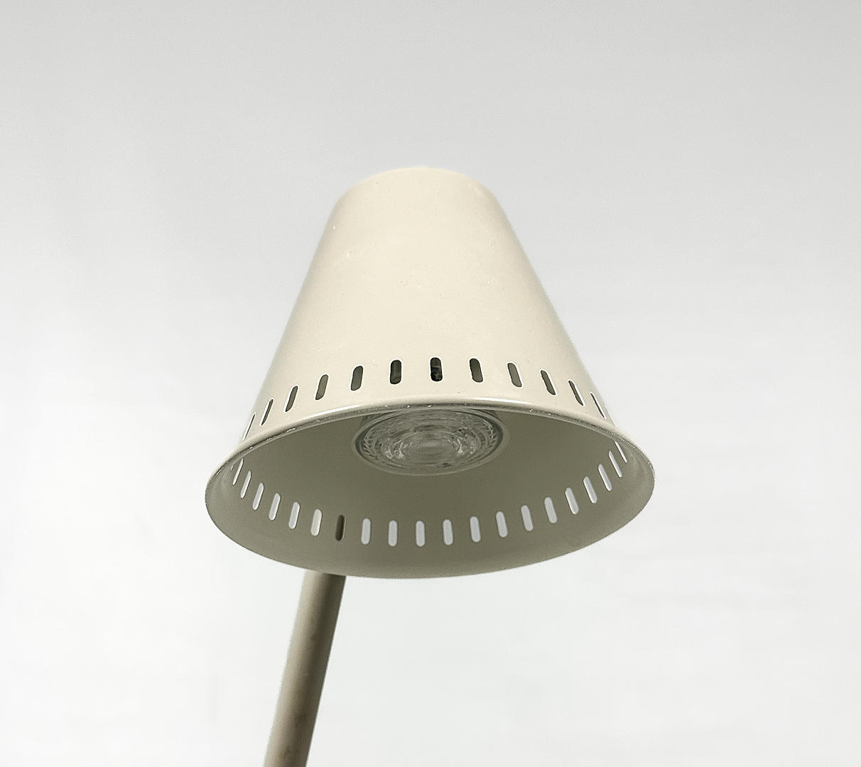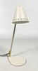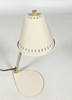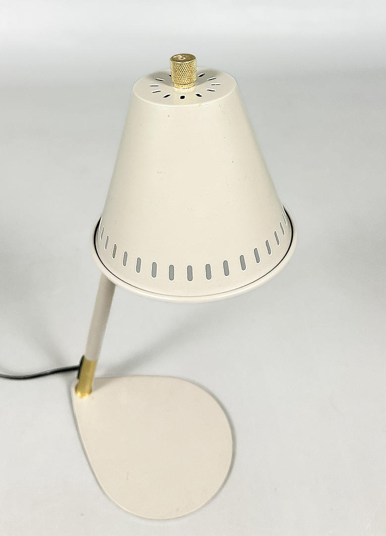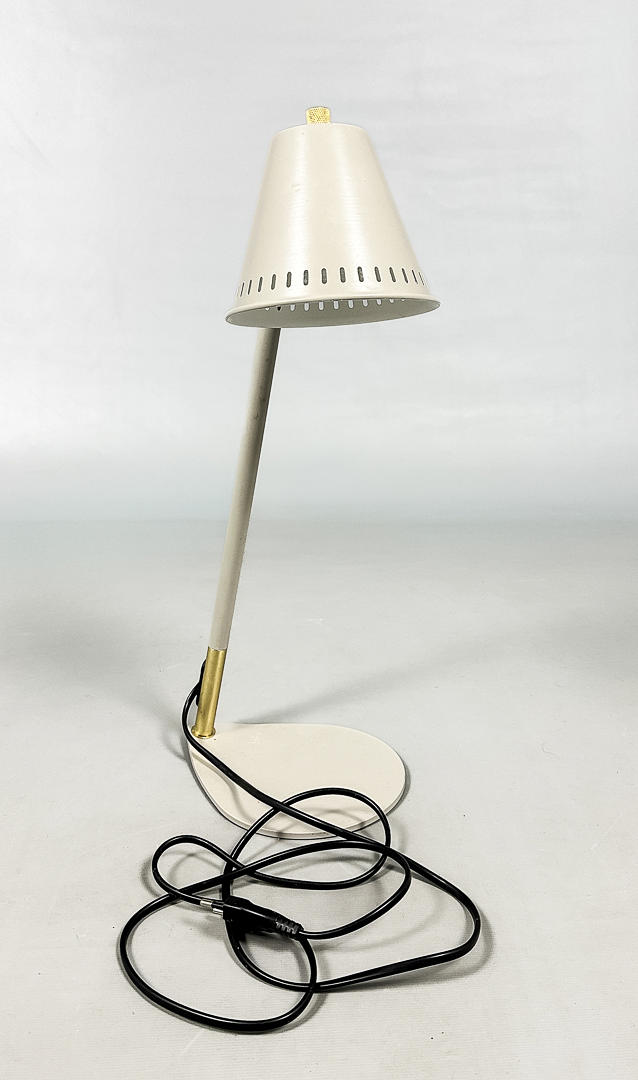 Grey matt table lamp with brass details. Labeled. Height 47 cm.
