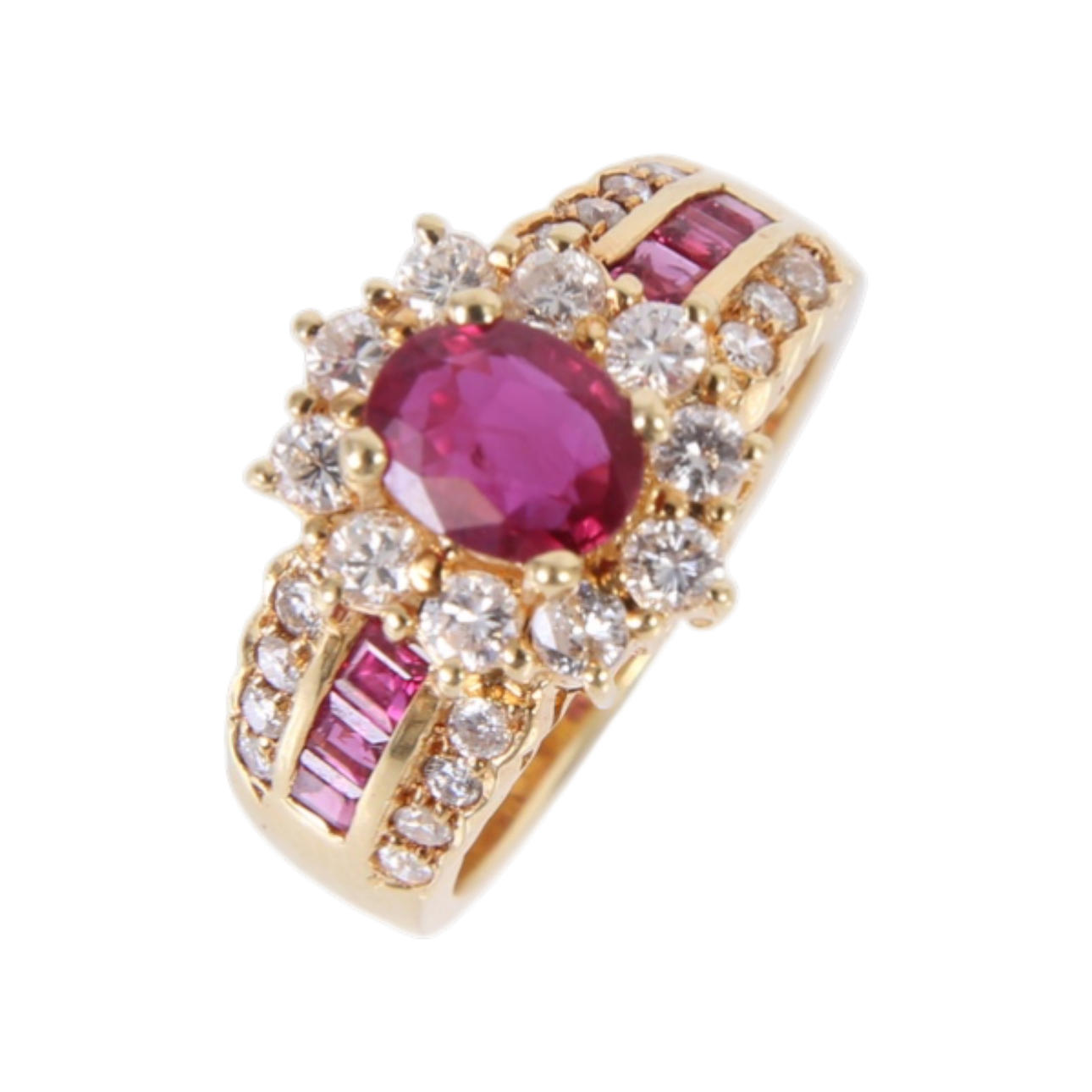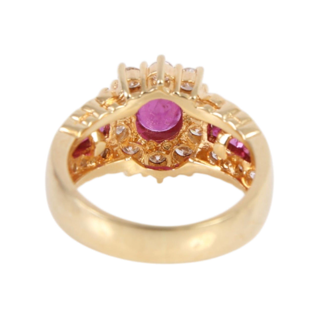 Rosette ring in 18 kt gold, with ruby 1.44 ct.