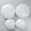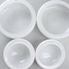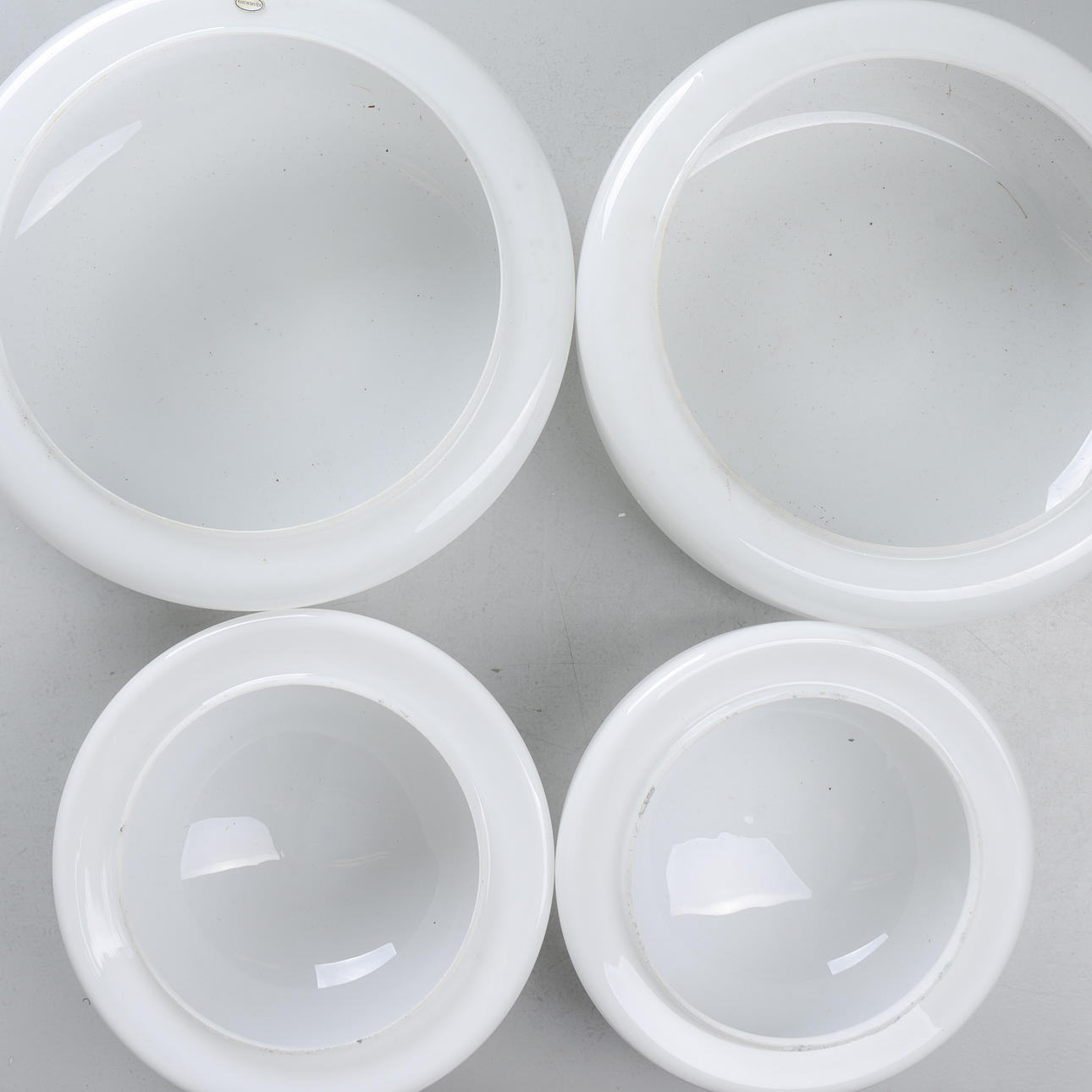 White glass cups. Diameters: 29, 21.5, 29.5 & 22 cm. Inner diameter: 23, 16, 23 & 16 cm.