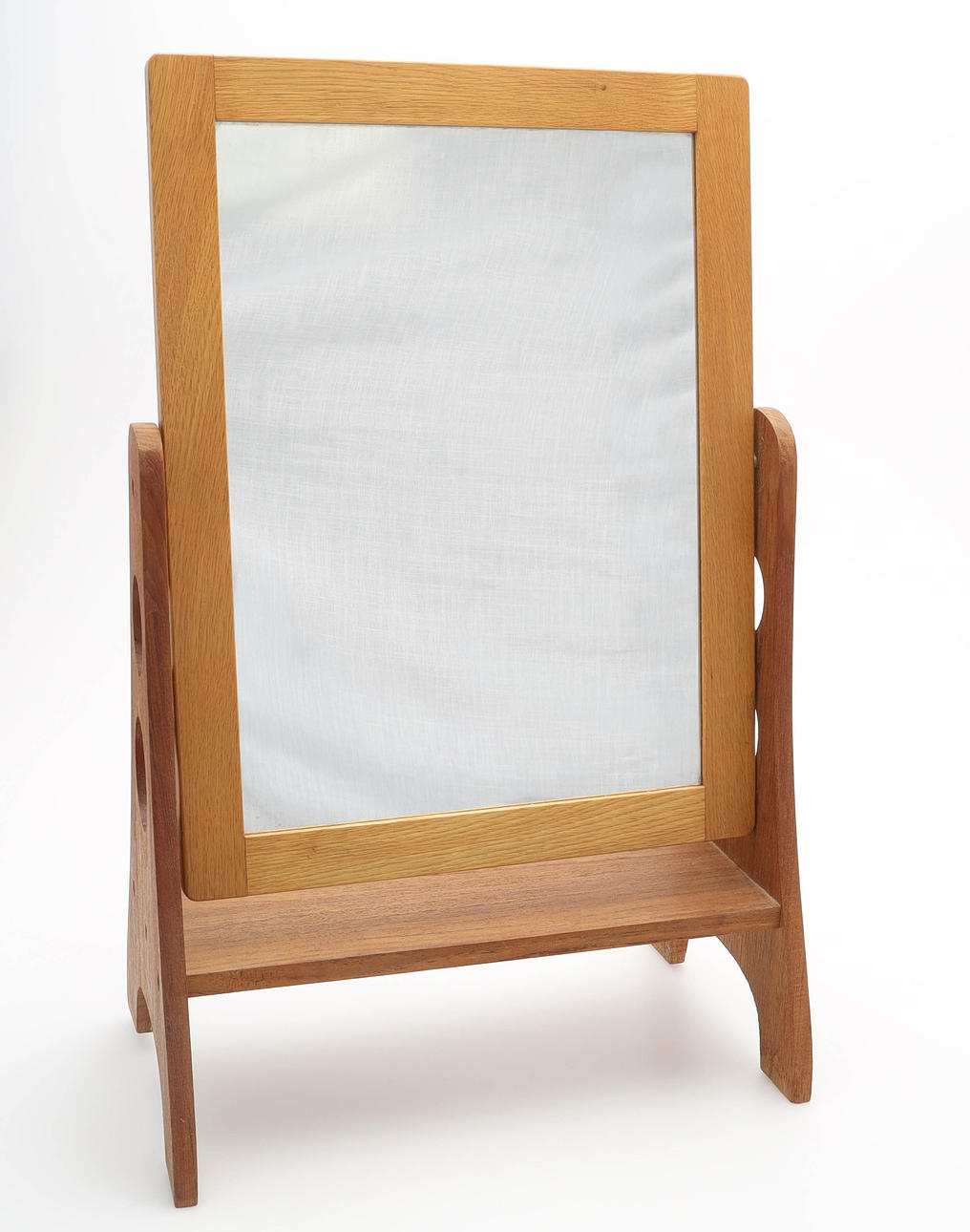 A mid 20th century oak & teak table mirror.