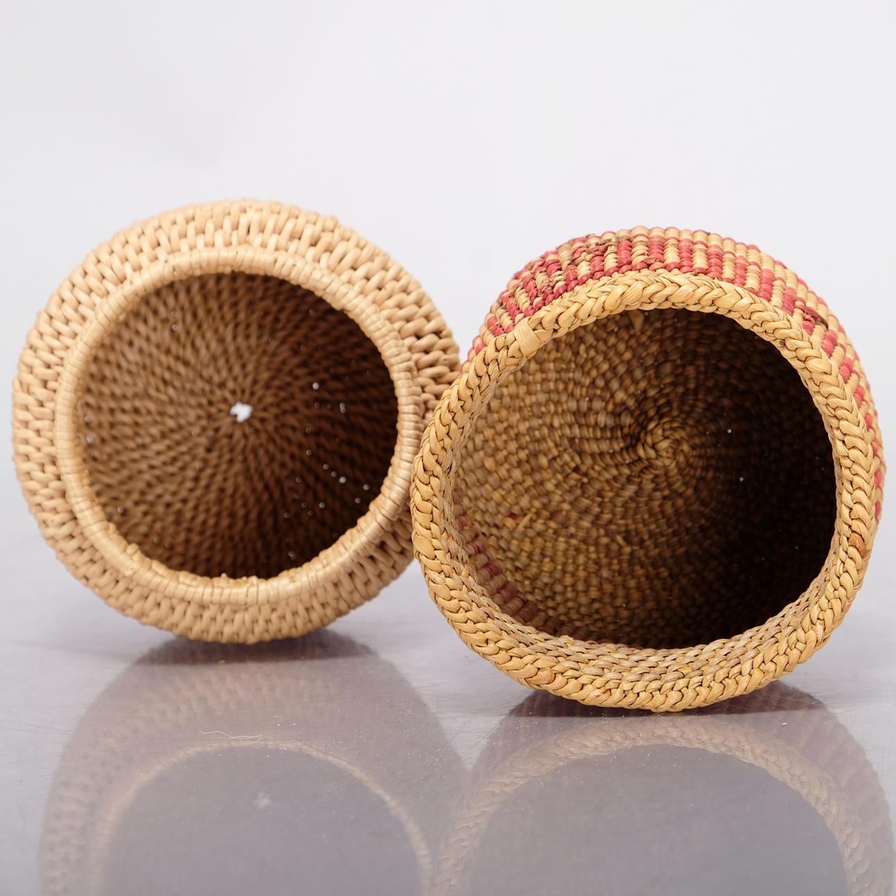 Consists of 2 baskets of different sizes, of which: height 8 cm, 8 diameter/height 9 x 9,5 cm.
