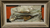 Still life with smoked fish and garlic. Frame approx. 56x33 cm.