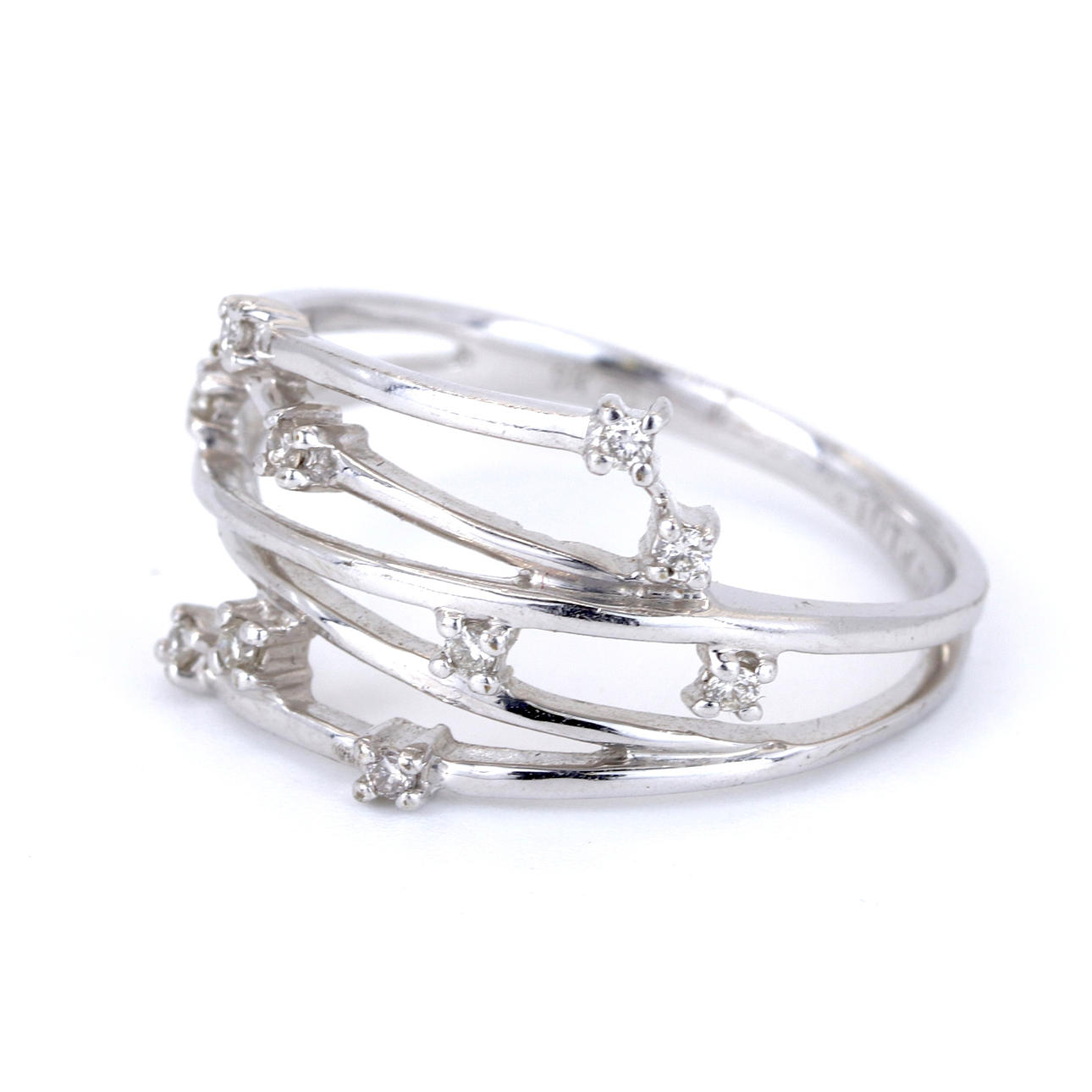 A 9ct white gold ring set with diamonds. Dia. total: 0.10ct approx.