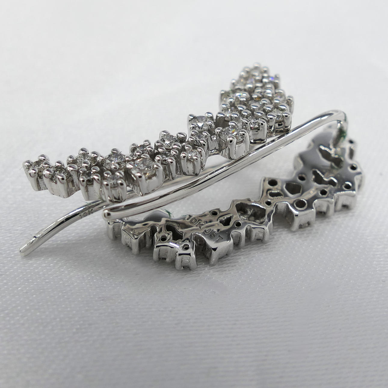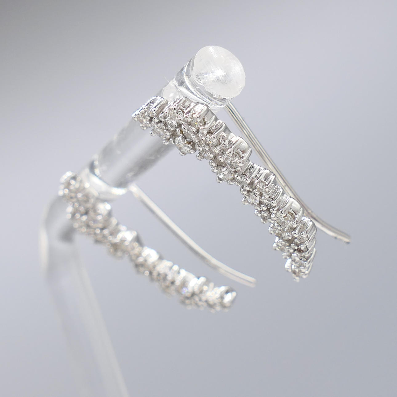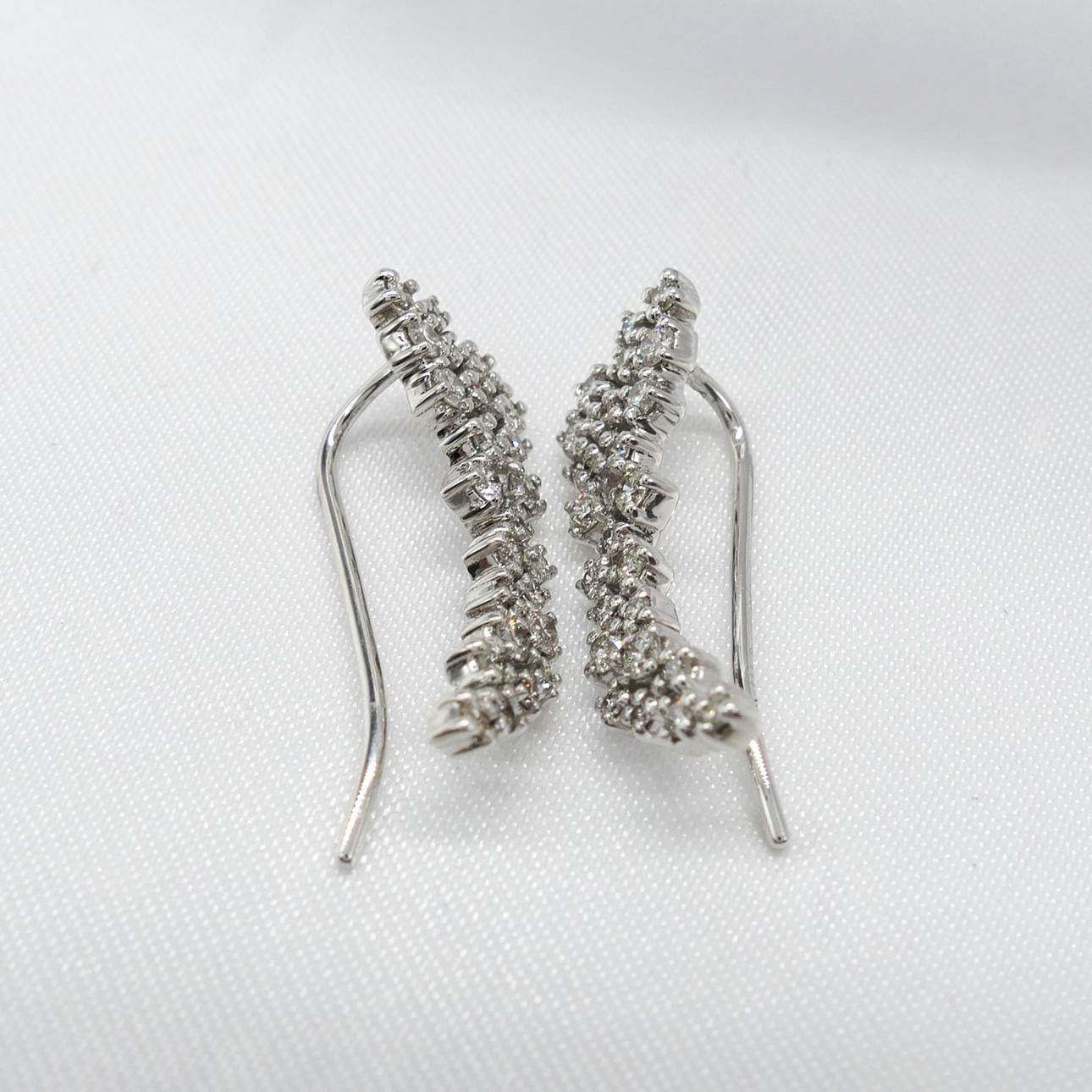 Earrings: 10k white gold as tested and stamped; drop length 22mm; fish hook fittings; weight 2.8 grams