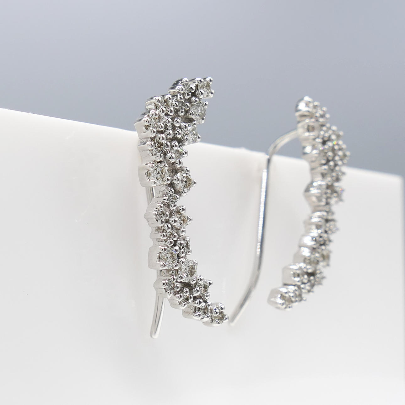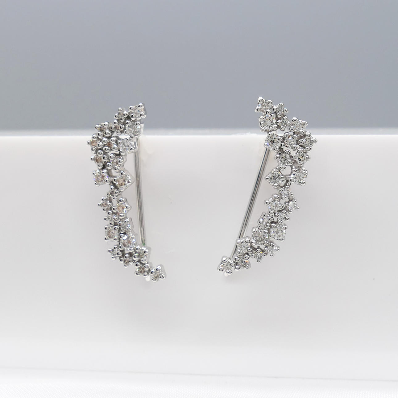 A pair of white gold floral cascade earrings set with 0.50 carats of diamonds. Supplied with a box