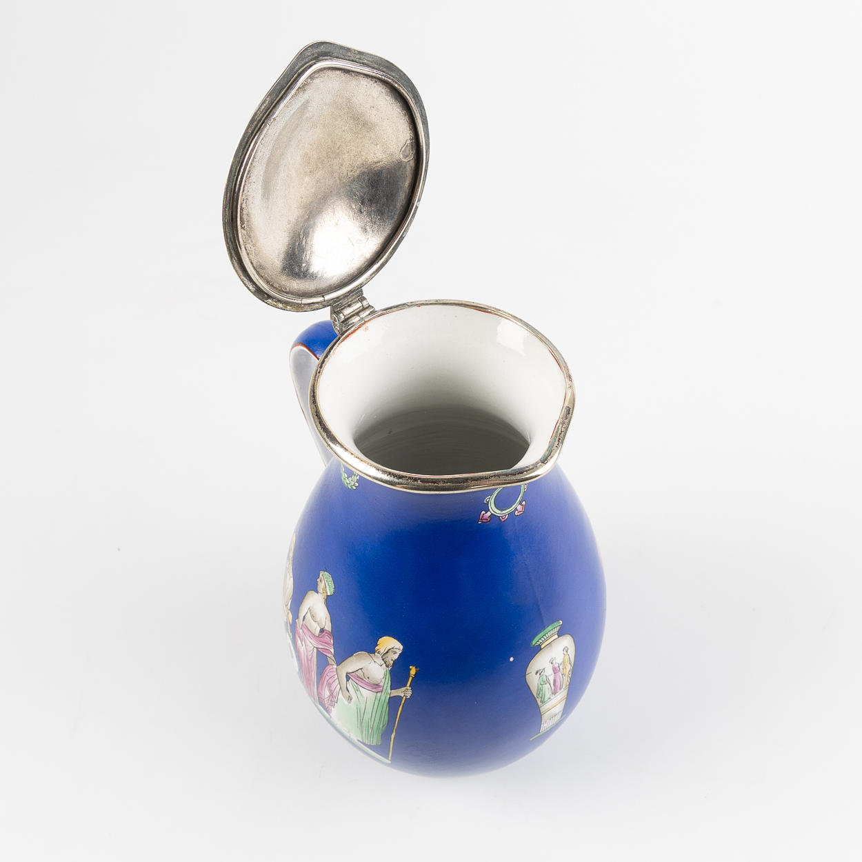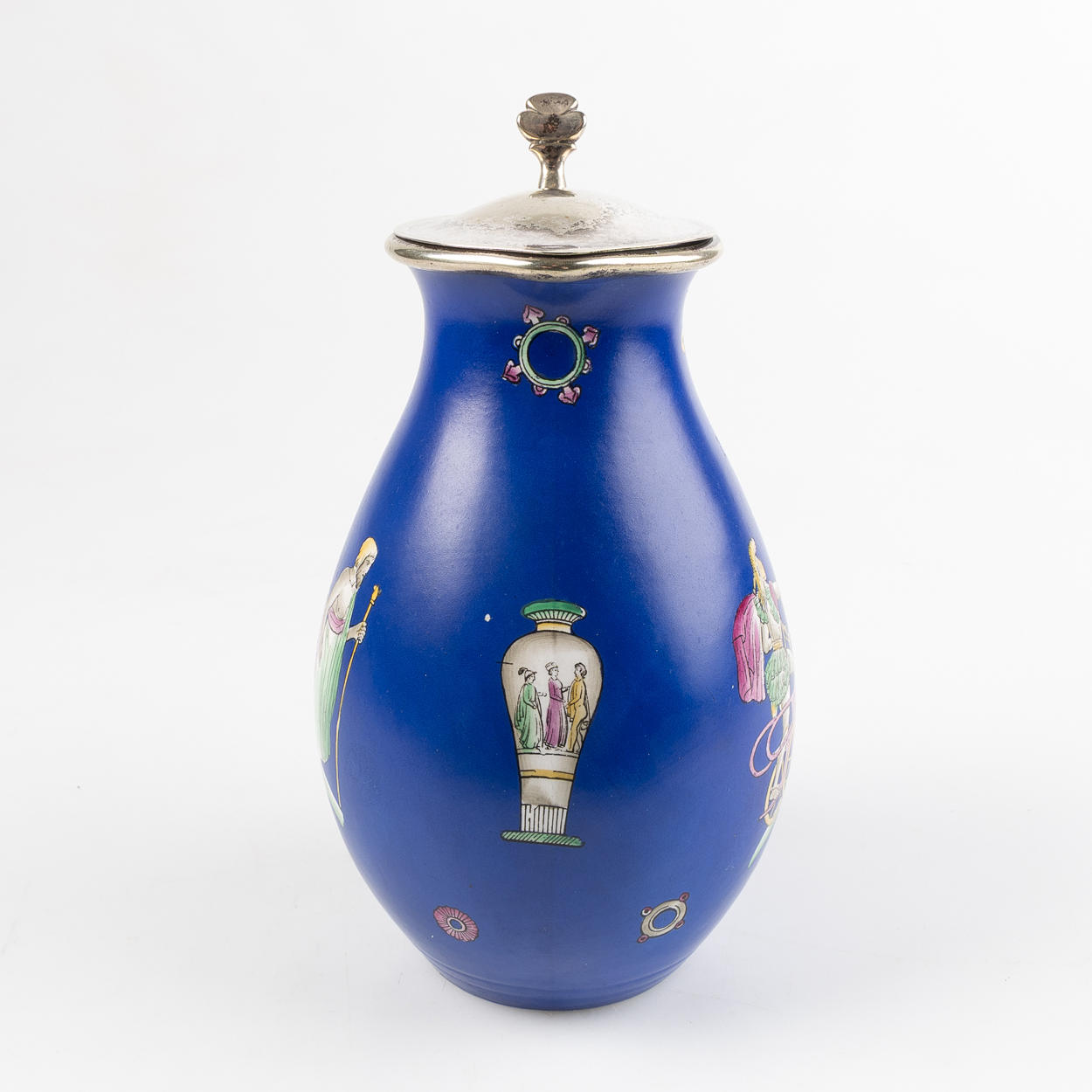 Painted decor in antique style. Vaguely stamped. Possibly France. H about 23 cm.