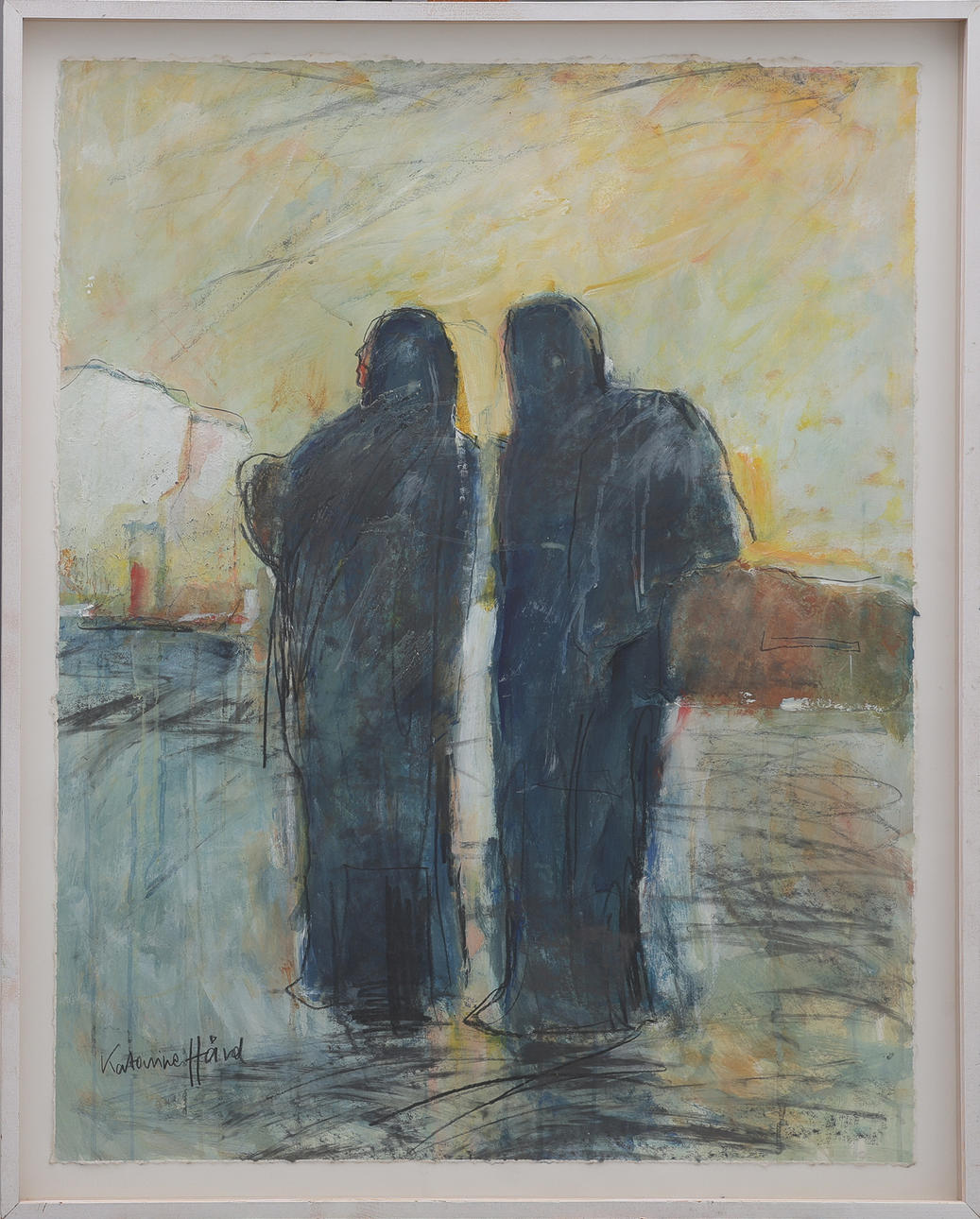 Mixed media on paper, signed, approx. 92x73 cm. Frame dimensions approx. 102x84 cm.