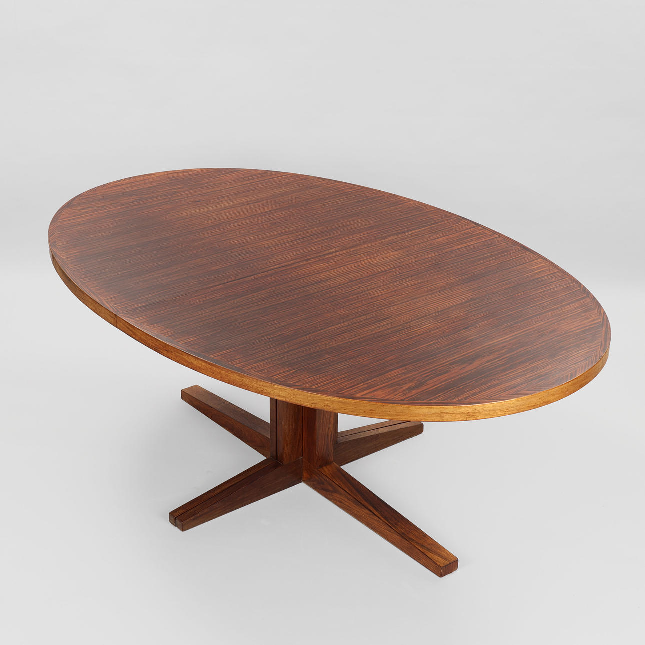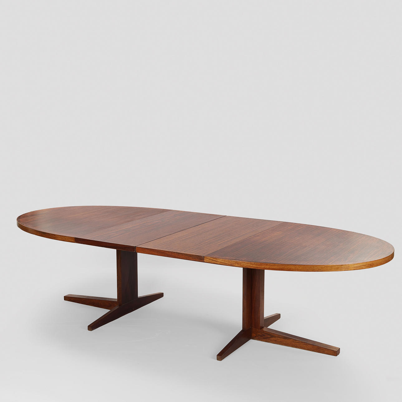 4934567. JOHN MORTENSEN. Oval rosewood dining table with two additional plates, Heltborg Møbler, Denmark, 1960s, (1+2).