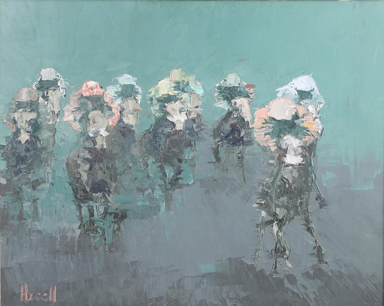 *This Peter Howell oil was bought at his second exhibition in 1969. He had worked with horses in various training yards around Newmarket so, with his artistic wife Joanna (descendant of portraitist Alfred Newland Smith), decided that the home of British flat racing was the perfect venue to exhibit. They rented Newmarket Memorial Hall during the week-long Tattersalls December sales, thus ensuring the town would be full of racing folk from all over the world.