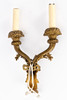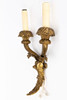 bronze. Wall sign in the shape of an acanthus leaf. From this, a fluted, curved candlestick arm emerges from each side. The grommets in the form of flower baskets. Electrified with 2 flames. HxWxD: approx. 36.5 x 22 x 7 cm.