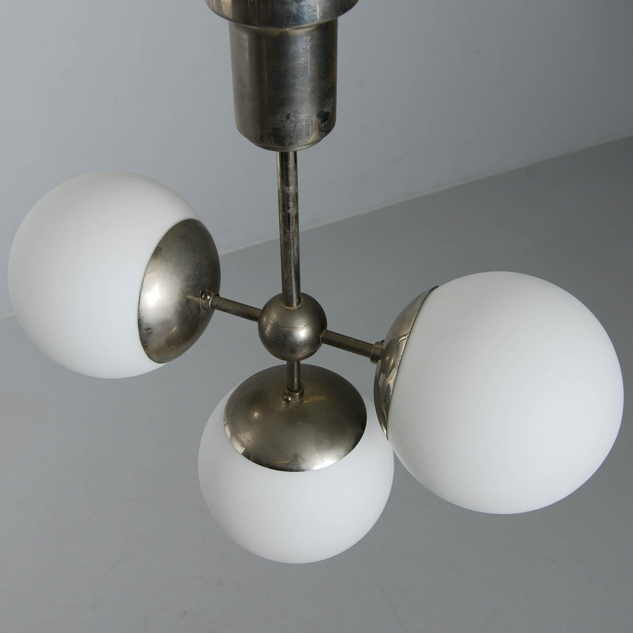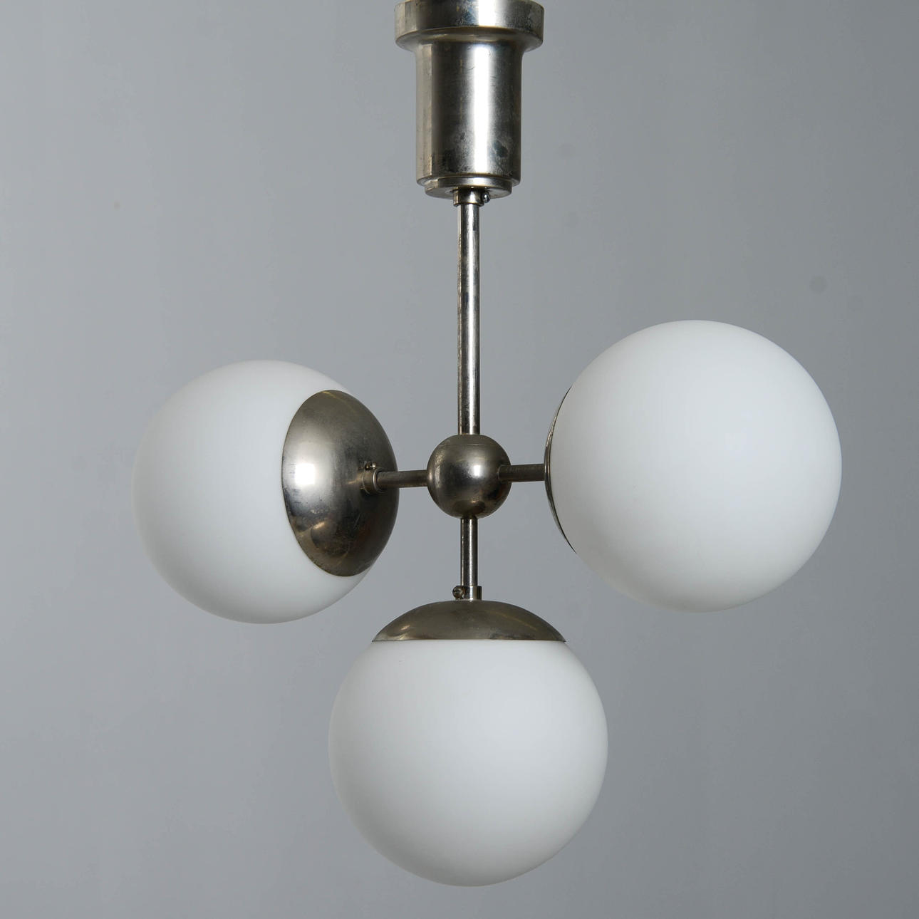 With three glass cups and metal frame. Height: 51 cm. Width: 44 cm.