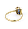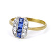 An 18ct yellow gold ring set with square cut sapphires and round cut diamonds.