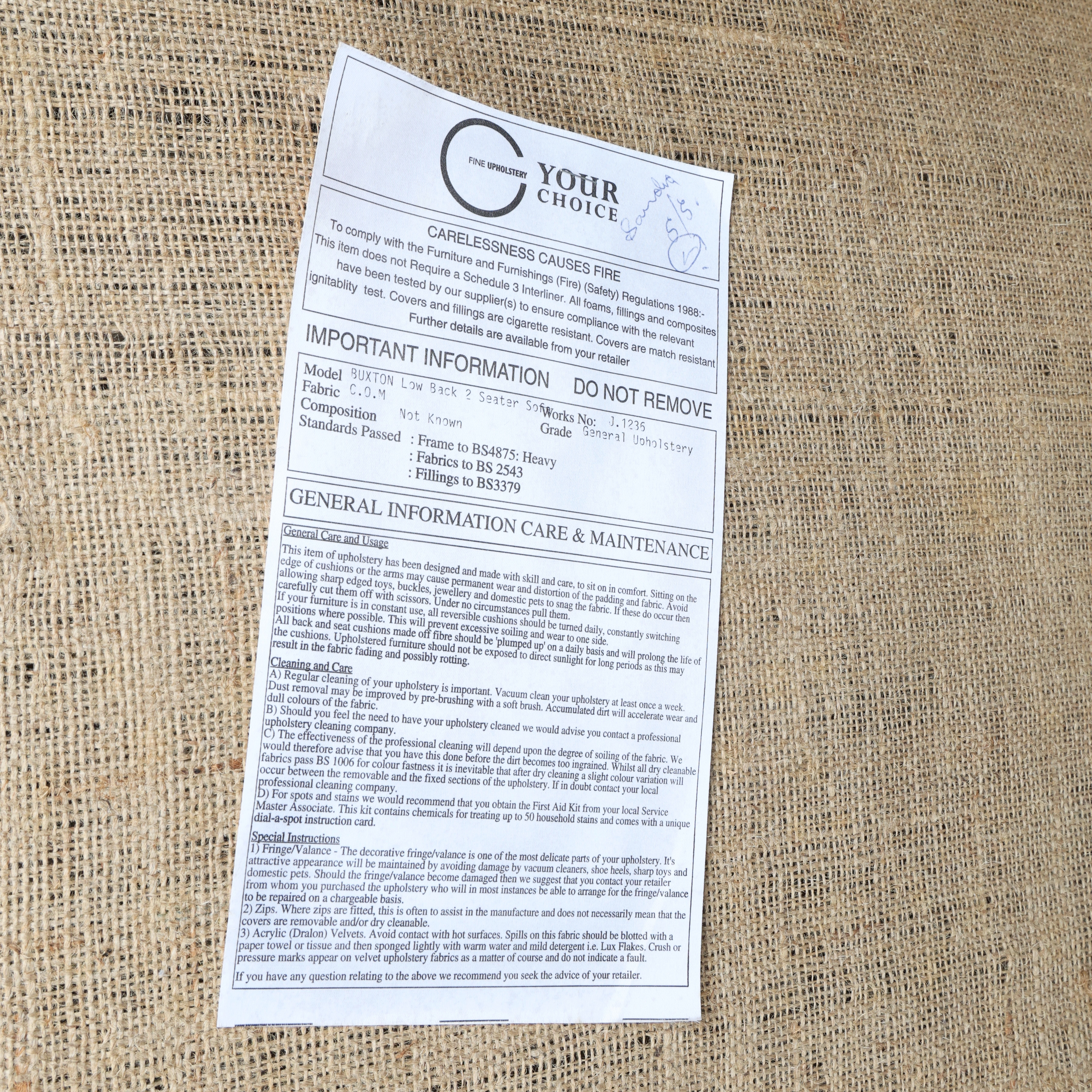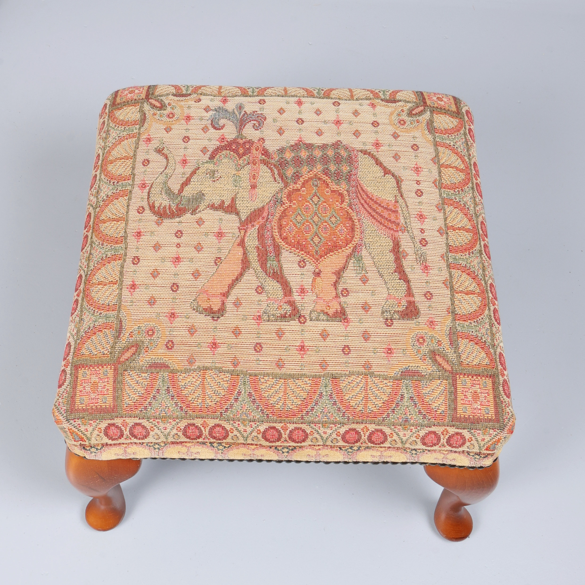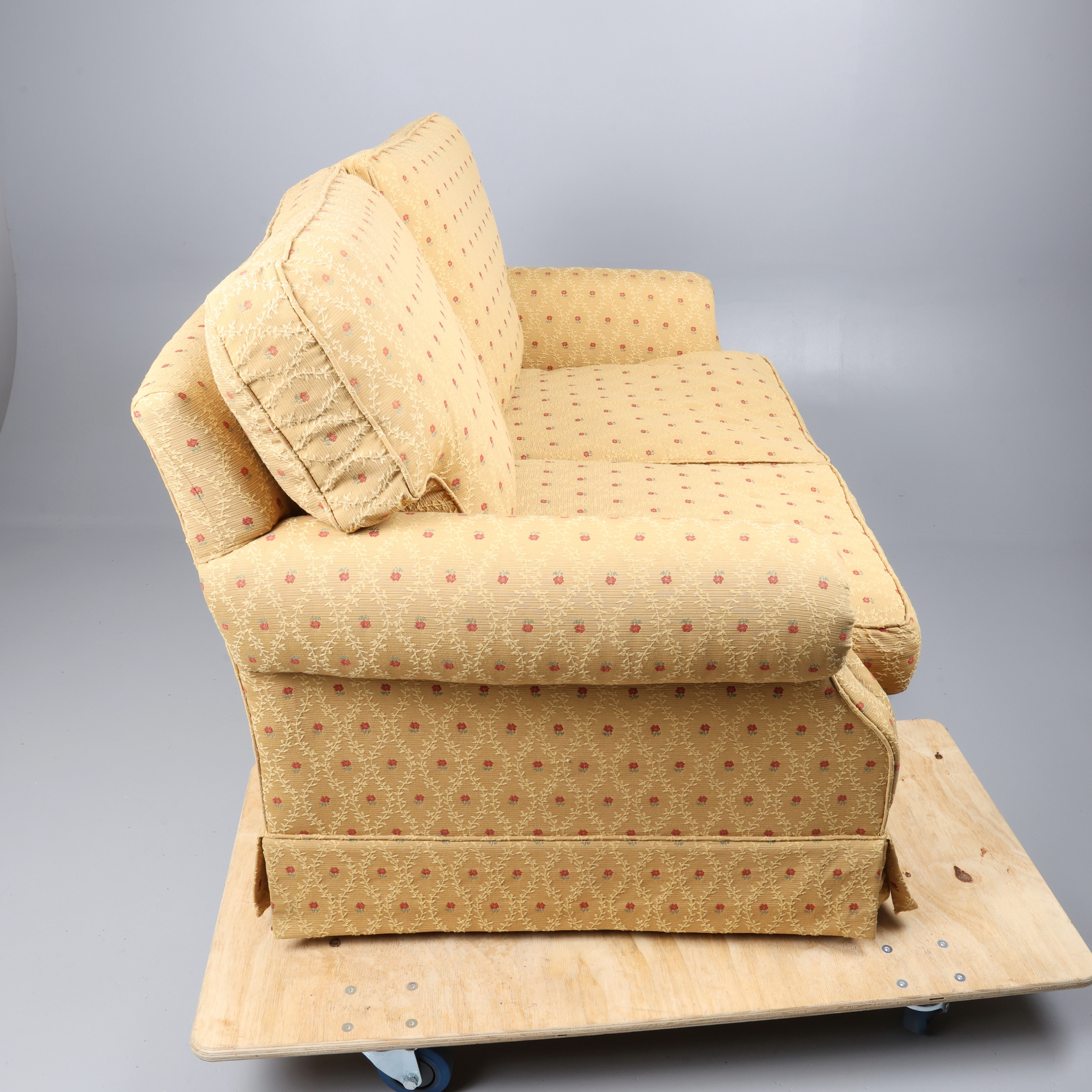 4935524. FABRIC TWO-SEATER SOFA AND A FOOTSTOOL. (2).
