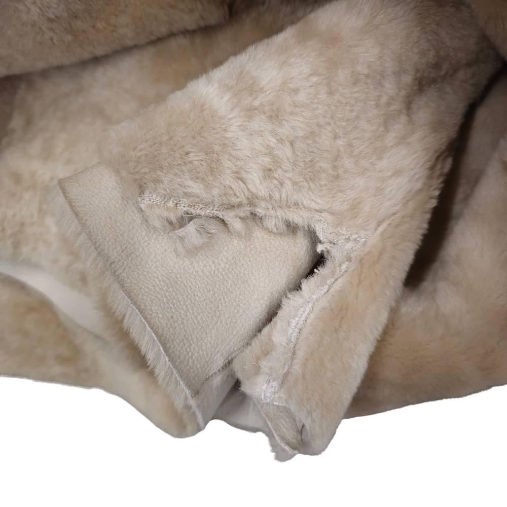 LARGE BED BLANKET IN DRAPED LAMB IN LIGHT BEIGE.