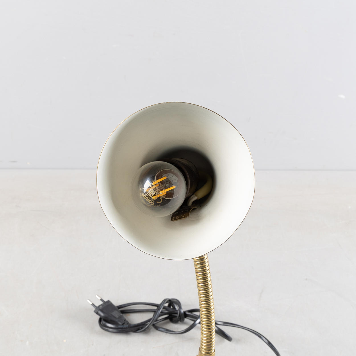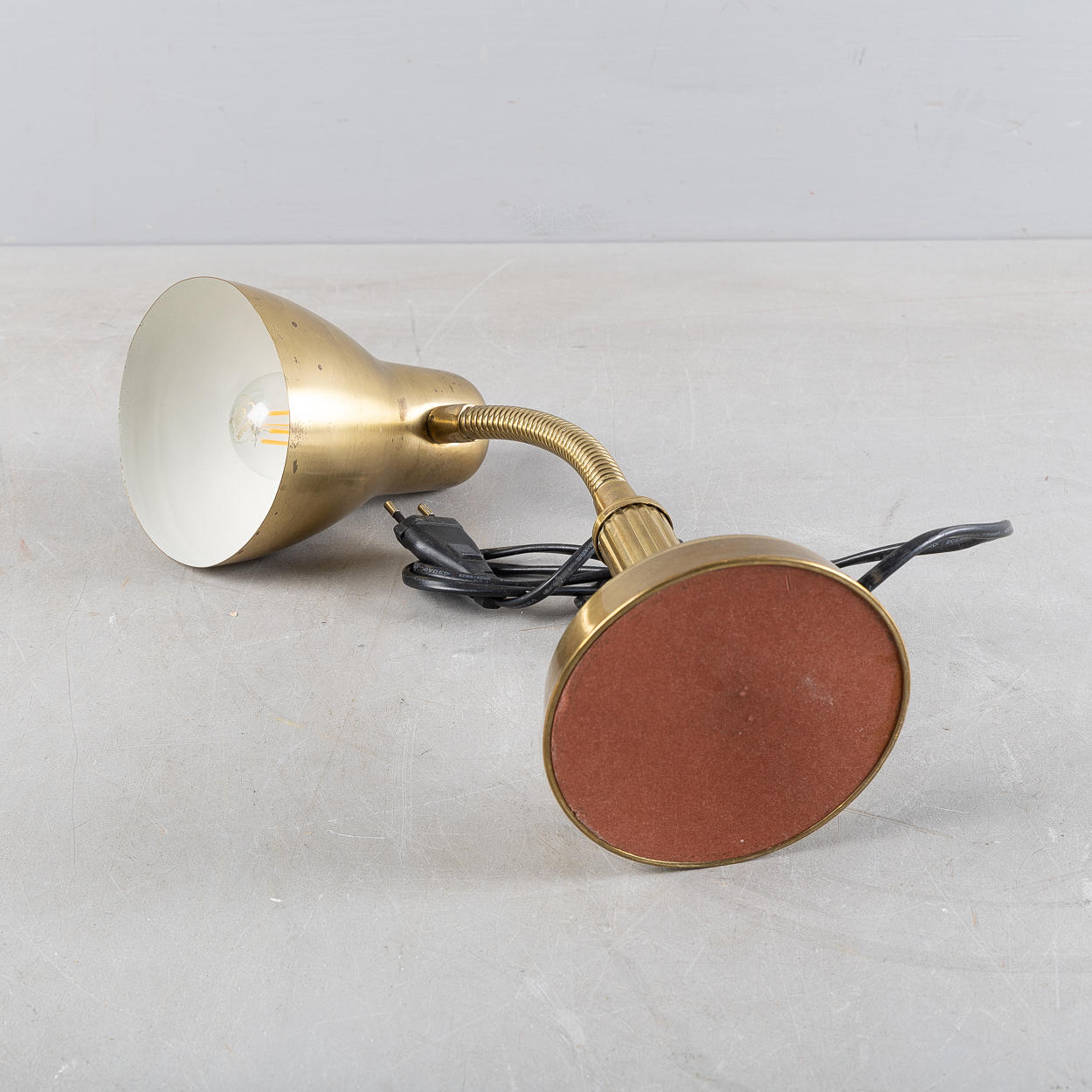 Brass. Bendable neck with cannellated grip. Height approx. 30 cm.