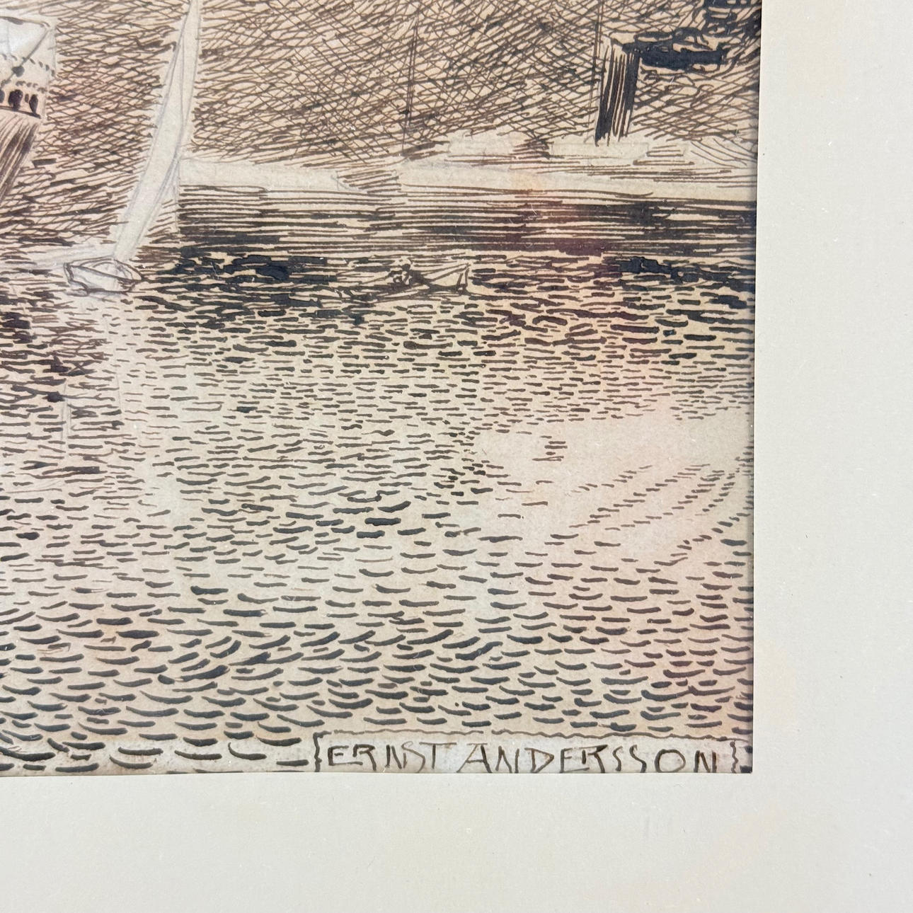 ERNST ANDERSSON THORS. Etching, Harbour motif, signed.