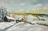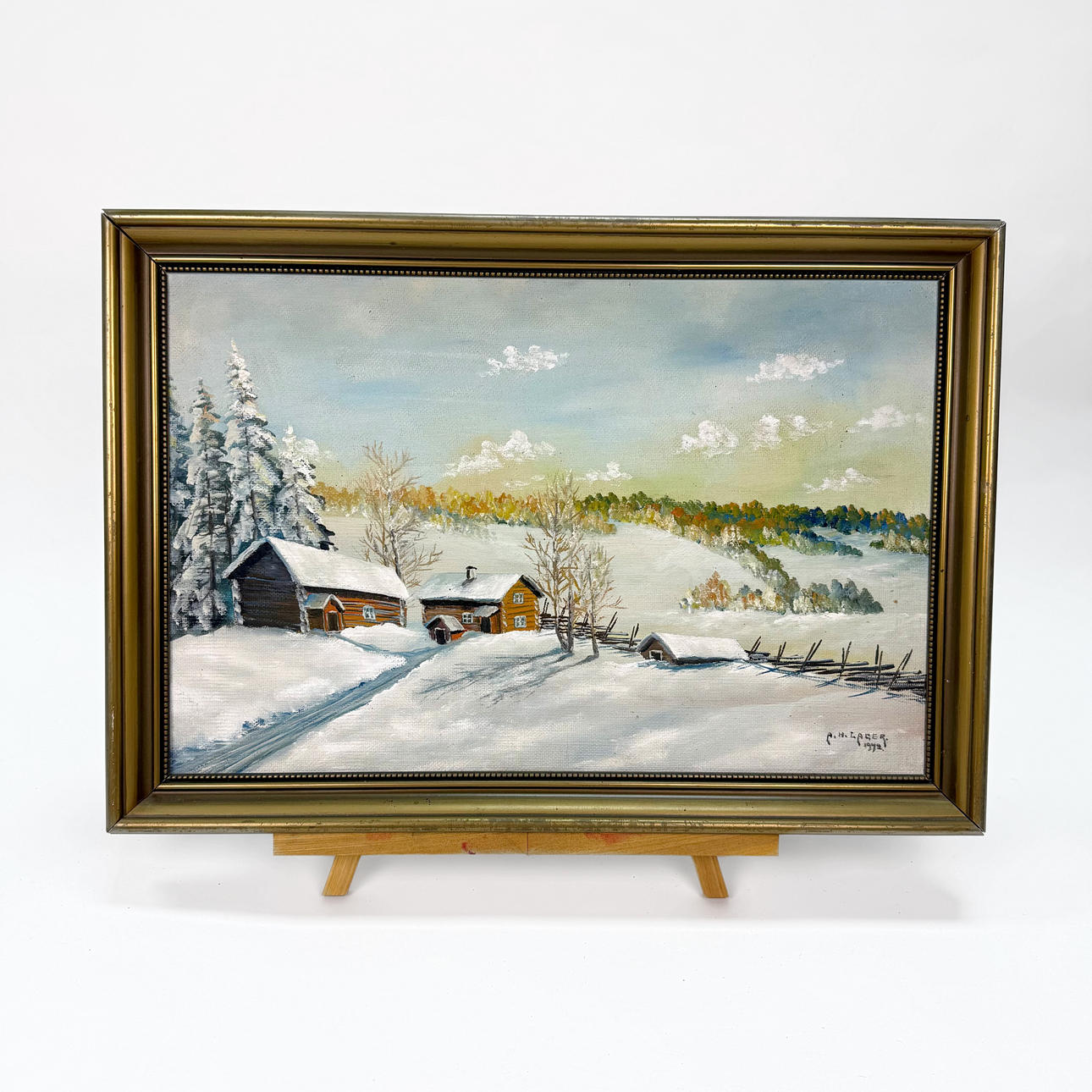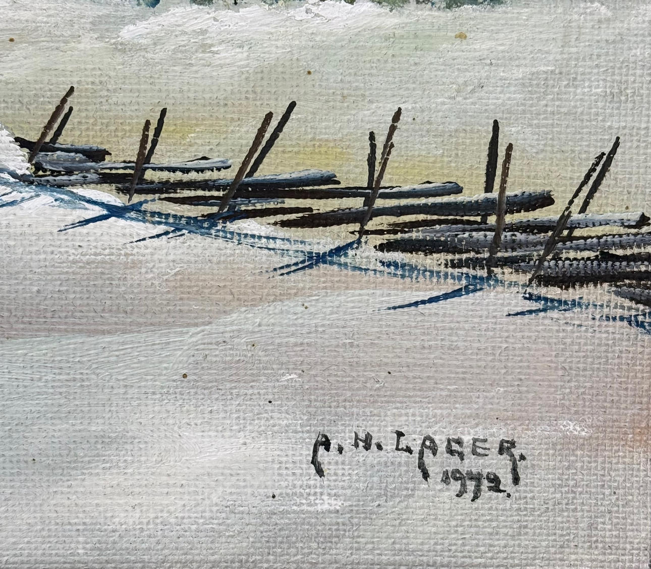 OIDENTIFIERAD KONSTNÄR. Cottages in winterscrew, signed A.H Lager, dated -1942.