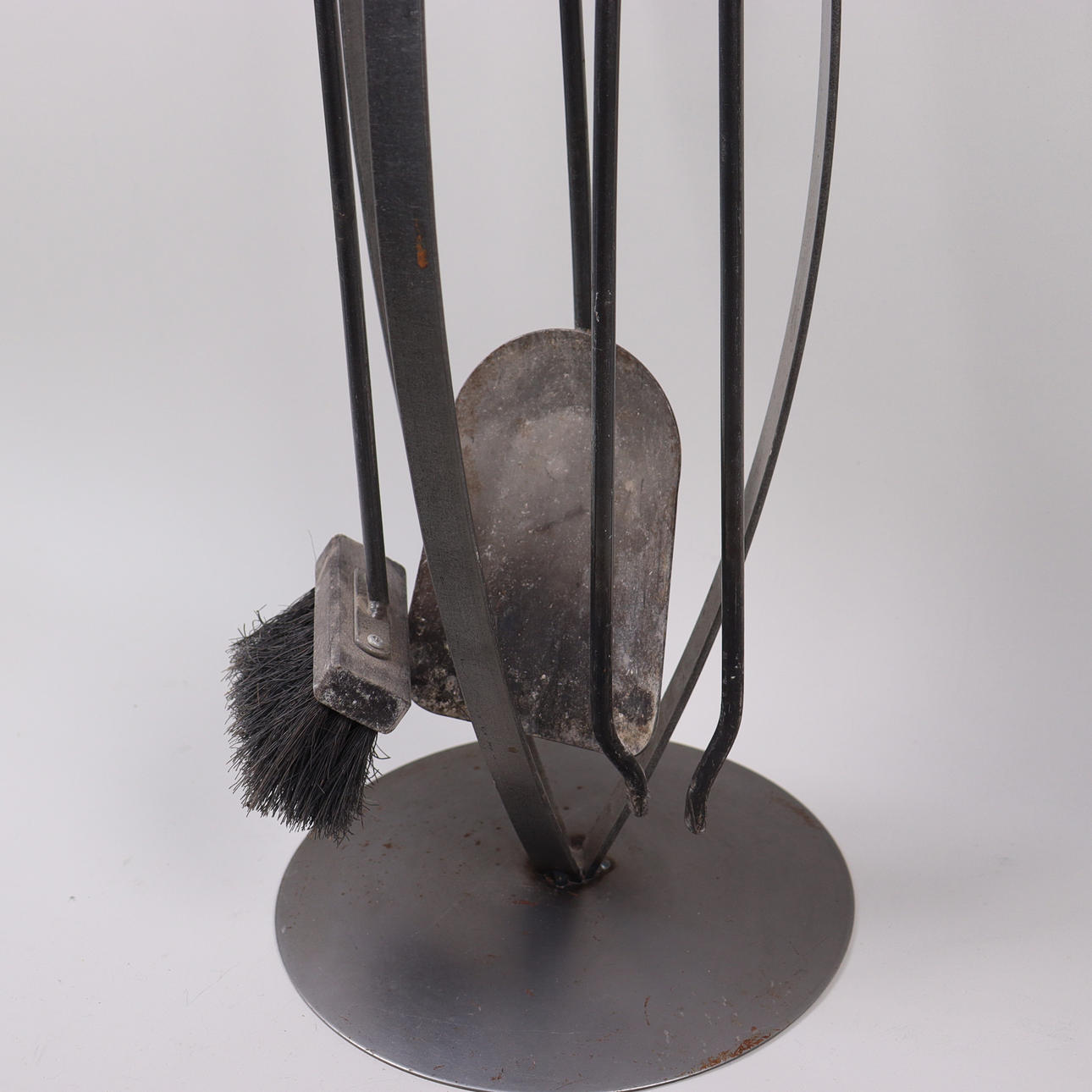 Fire rack in forging with three tools: brush, shovel and pliers.