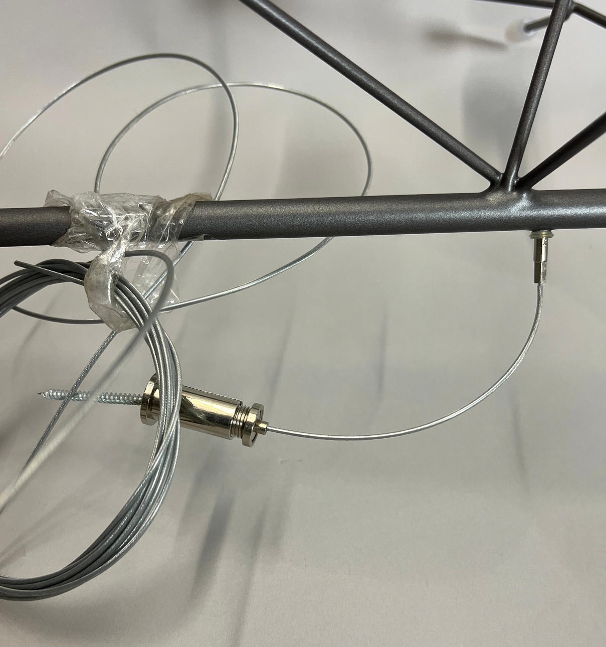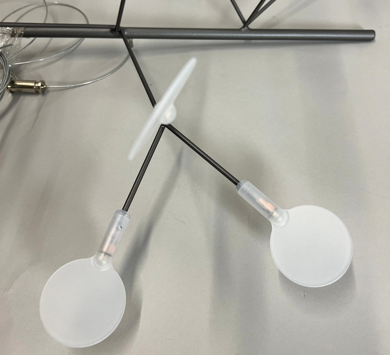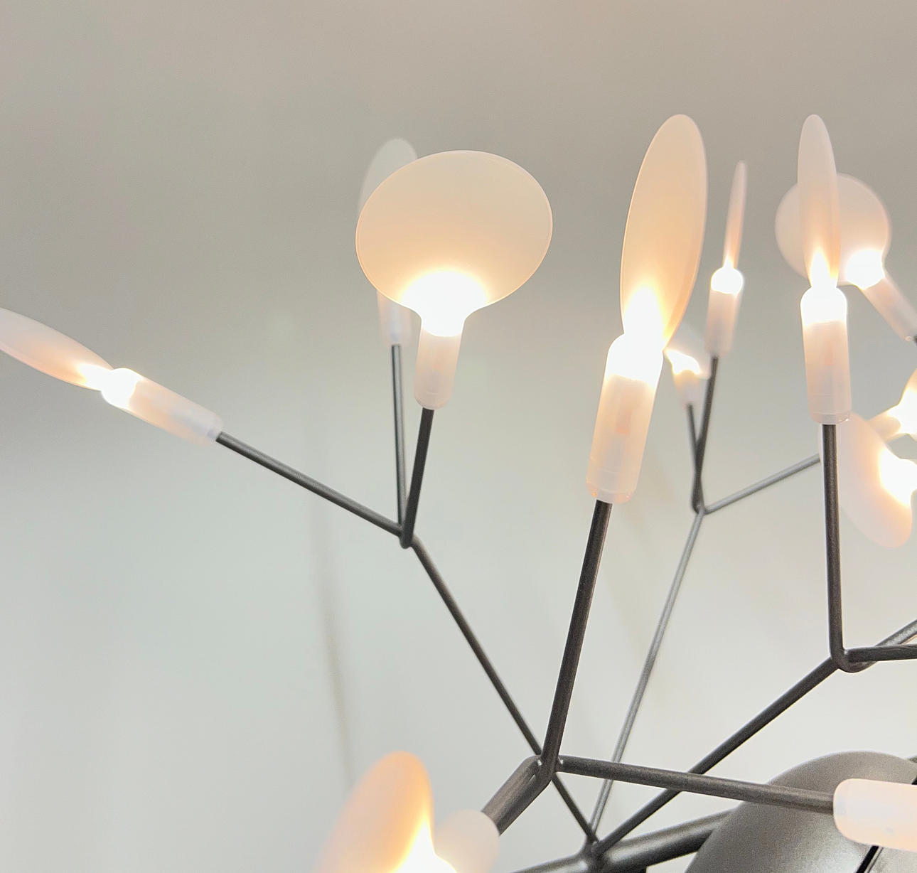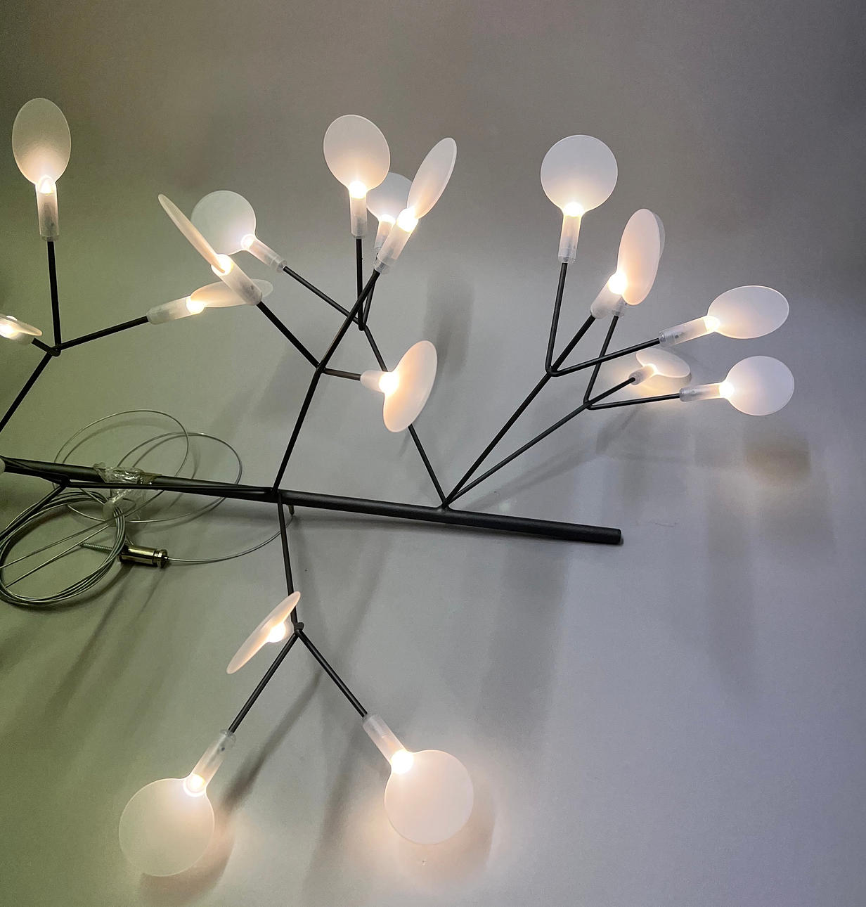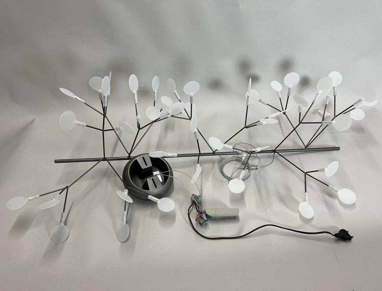 Nickel metal frame with 45 polycarbonate lampshades.