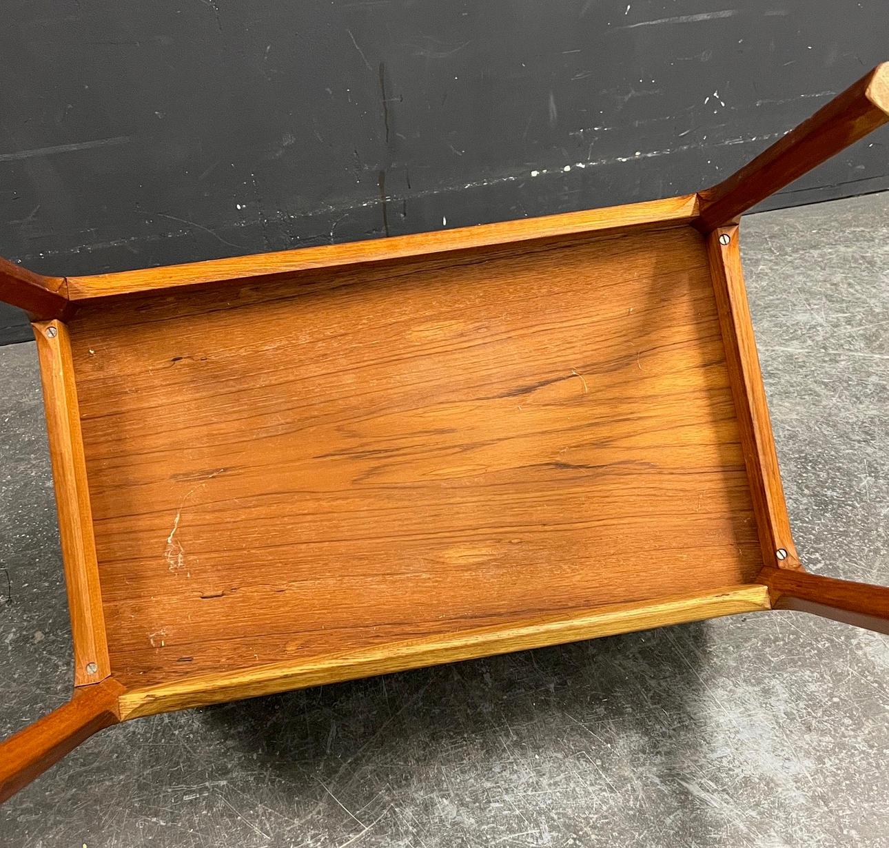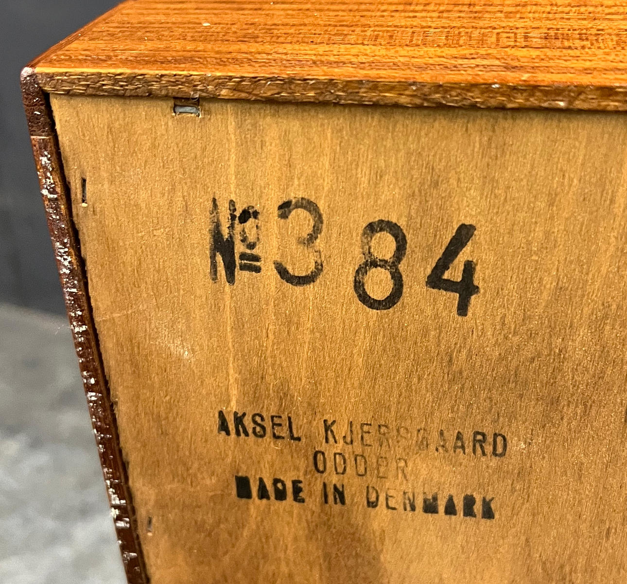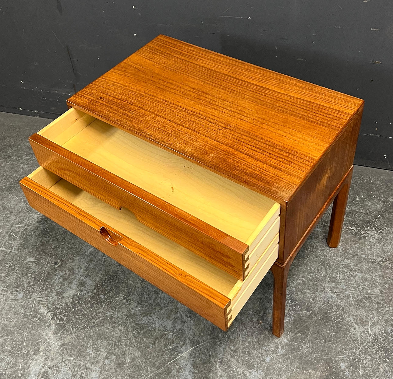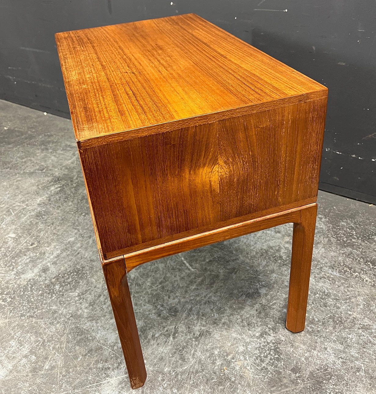 Teak wood, made by Aksel Kjaersgaard Height 52cm, width 59cm, depth 35.5cm.