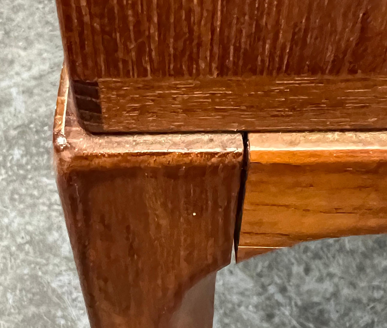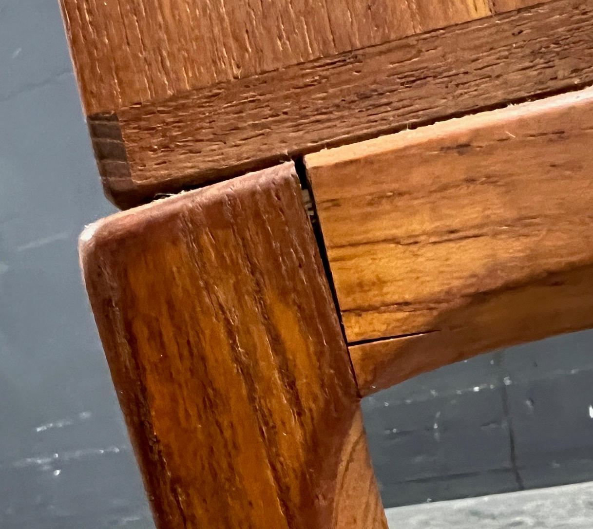 Normal signs of use. One leg slightly loosened, small crack in the frame and minor bumping.