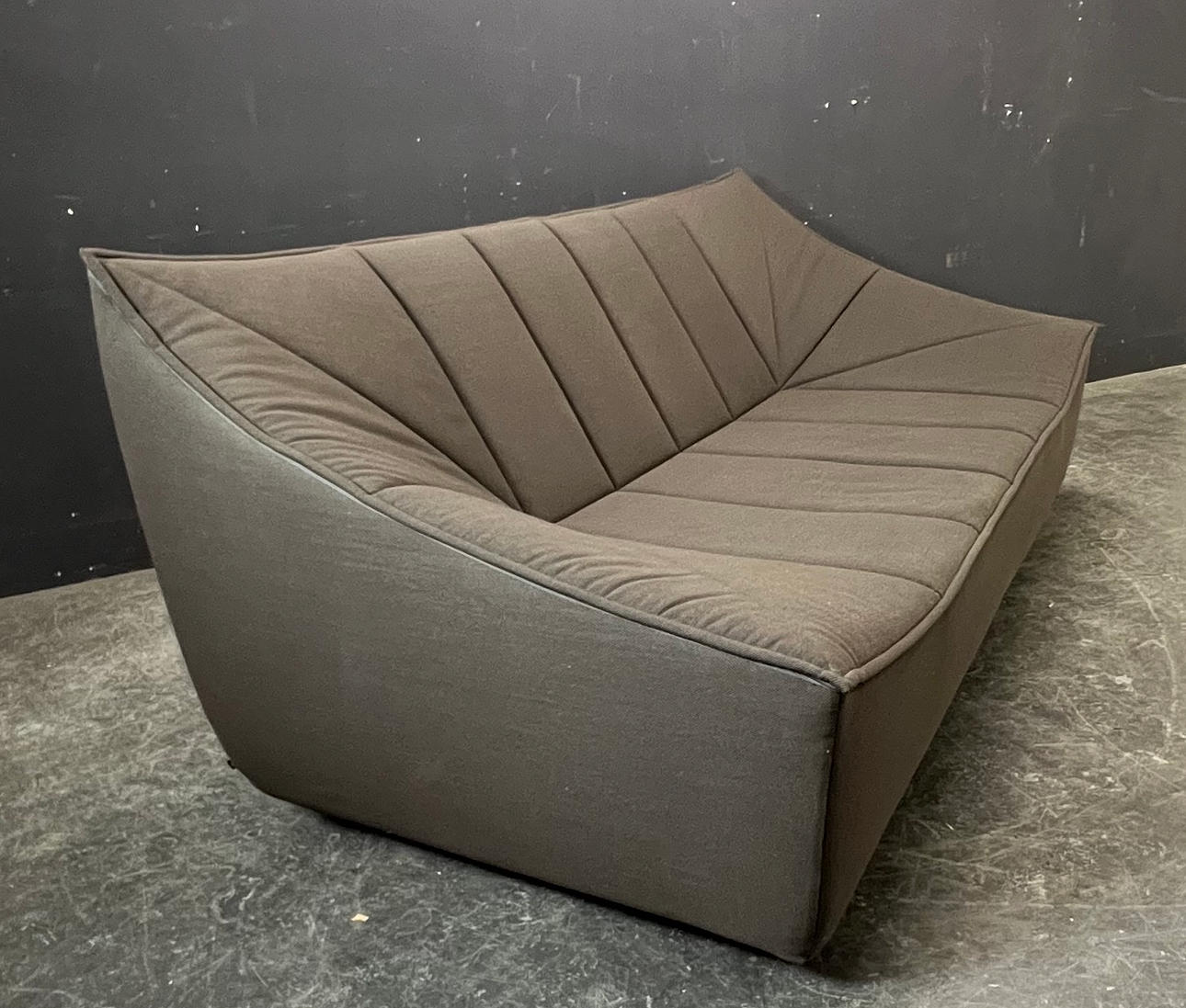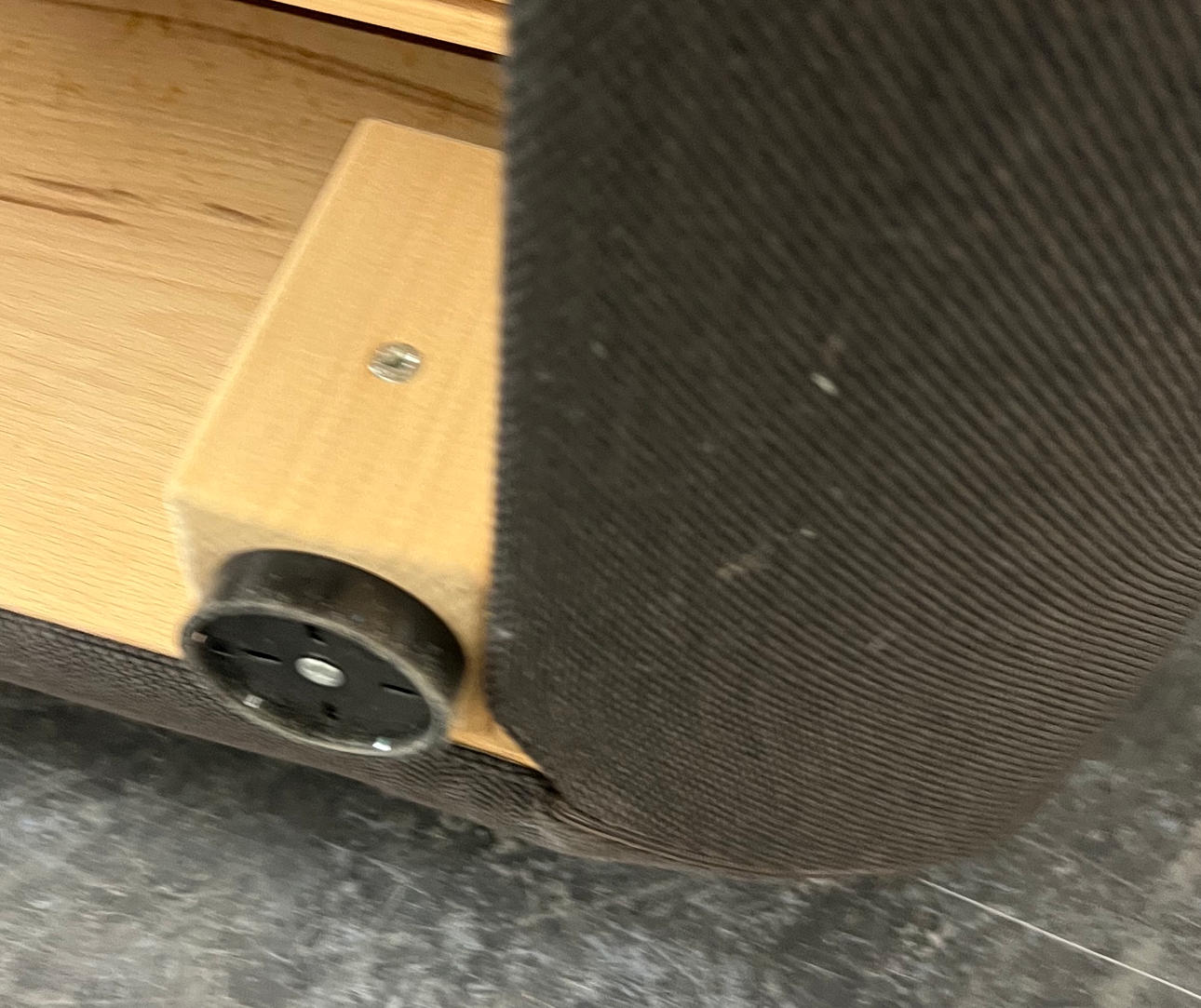 Wooden frame with upholstery and textile cover.