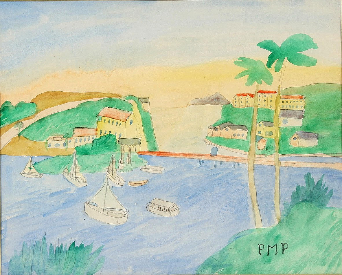 Watercolour, Southern landscape. Monogram signed PMP