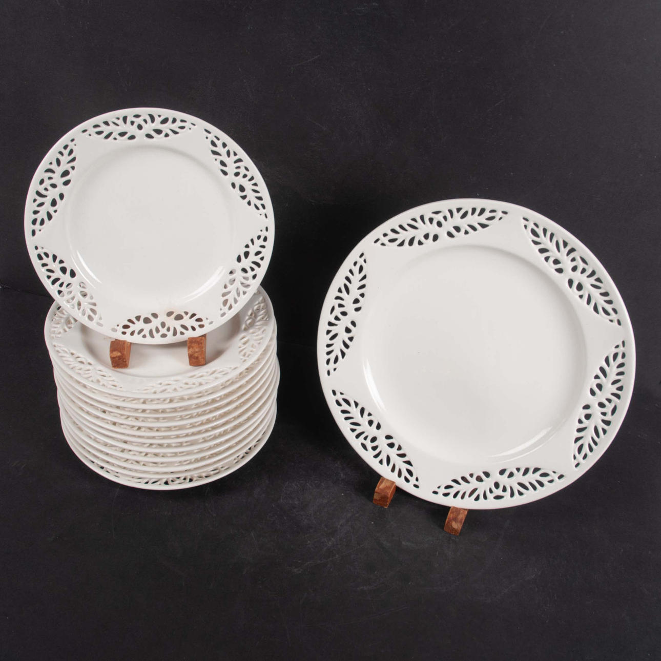 Normal wear and tear and 2 plates with slight discolouration and 1 with manufacturing damage.