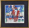 Straw town motif. Signed 25x26 cm