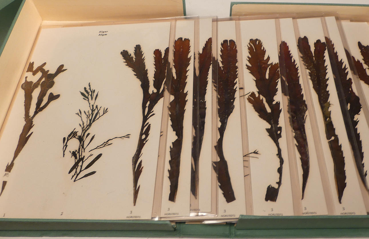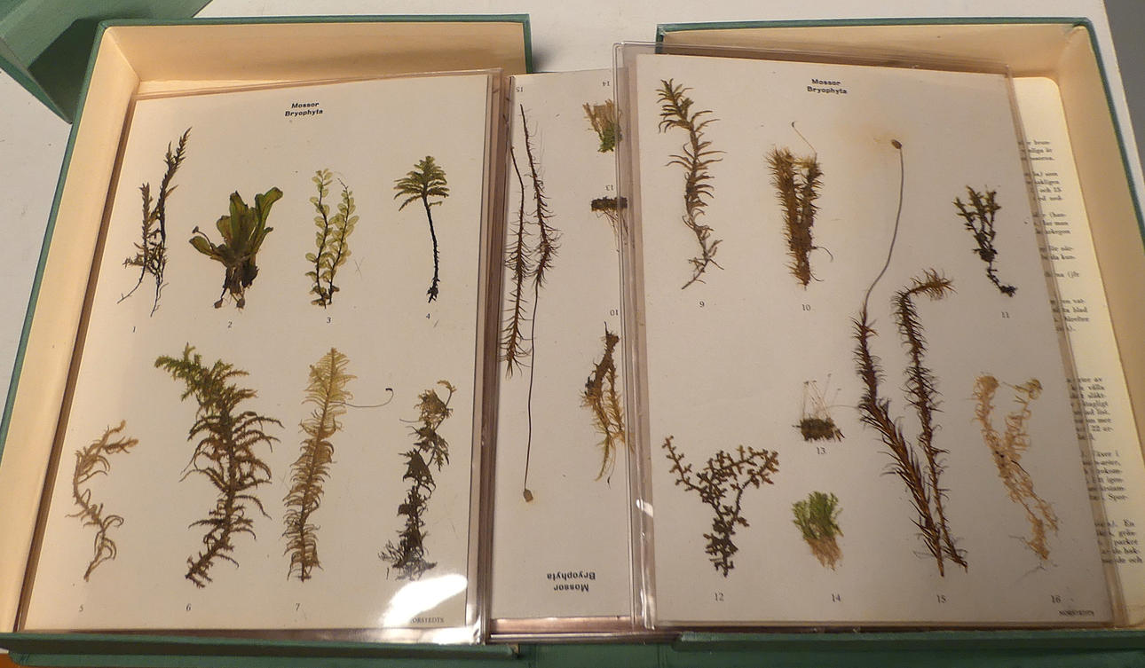 Six boxes of wrapped plants. Algae, mosses and lichens Boxes size, 30 x 22 cm, height 4 x 5.5 and 2 x 8 cm.