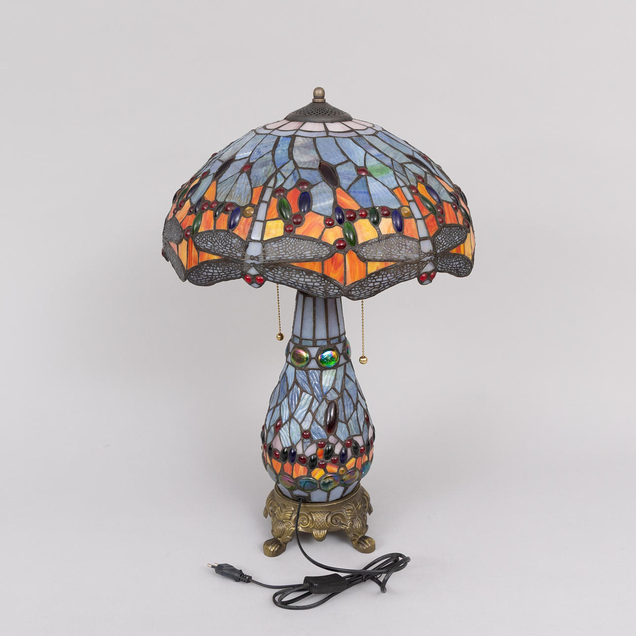 Table lamp with decoration of dragonflies. Height 65 cm. Diameter 42 cm.