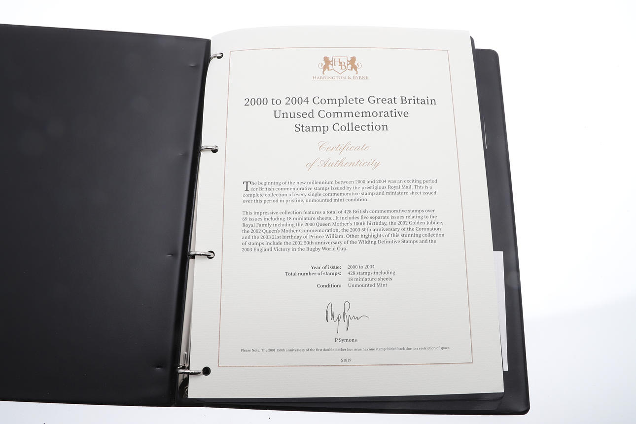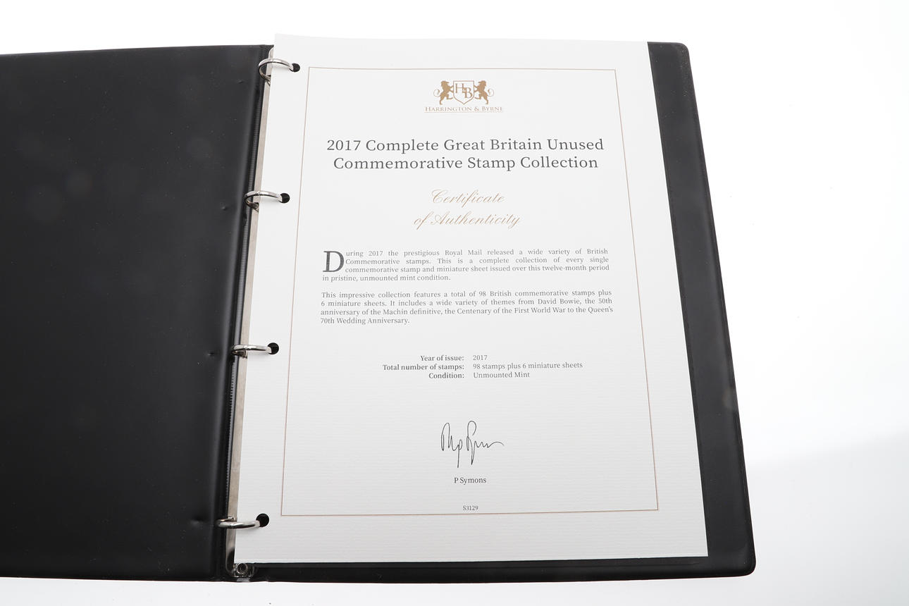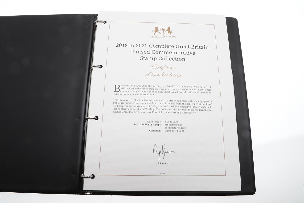 Four stamp booklets, including 2018-2020 Complete GB Unused Commemorative Stamp Collection, 2000-2004 Complete GB Unused Commemorative Stamp Collection, similar 2005-2007 Collection, and 2017 Complete Unused Commemorative Stamp Collection. Booklets 29cms by 23cms. (4).