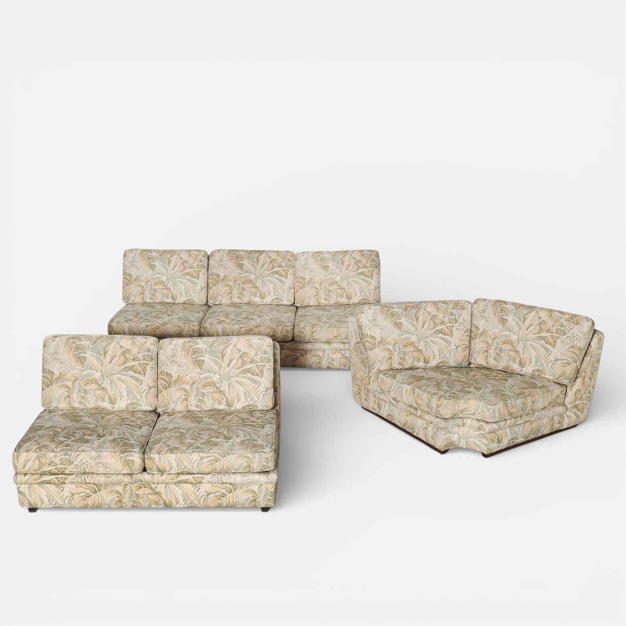 “Playboy” corner sofa with three modules, upholstered in patterned fabric.
