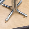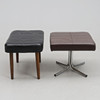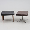 Footstool, in brown artificial leather, aluminum legs (rust is present).