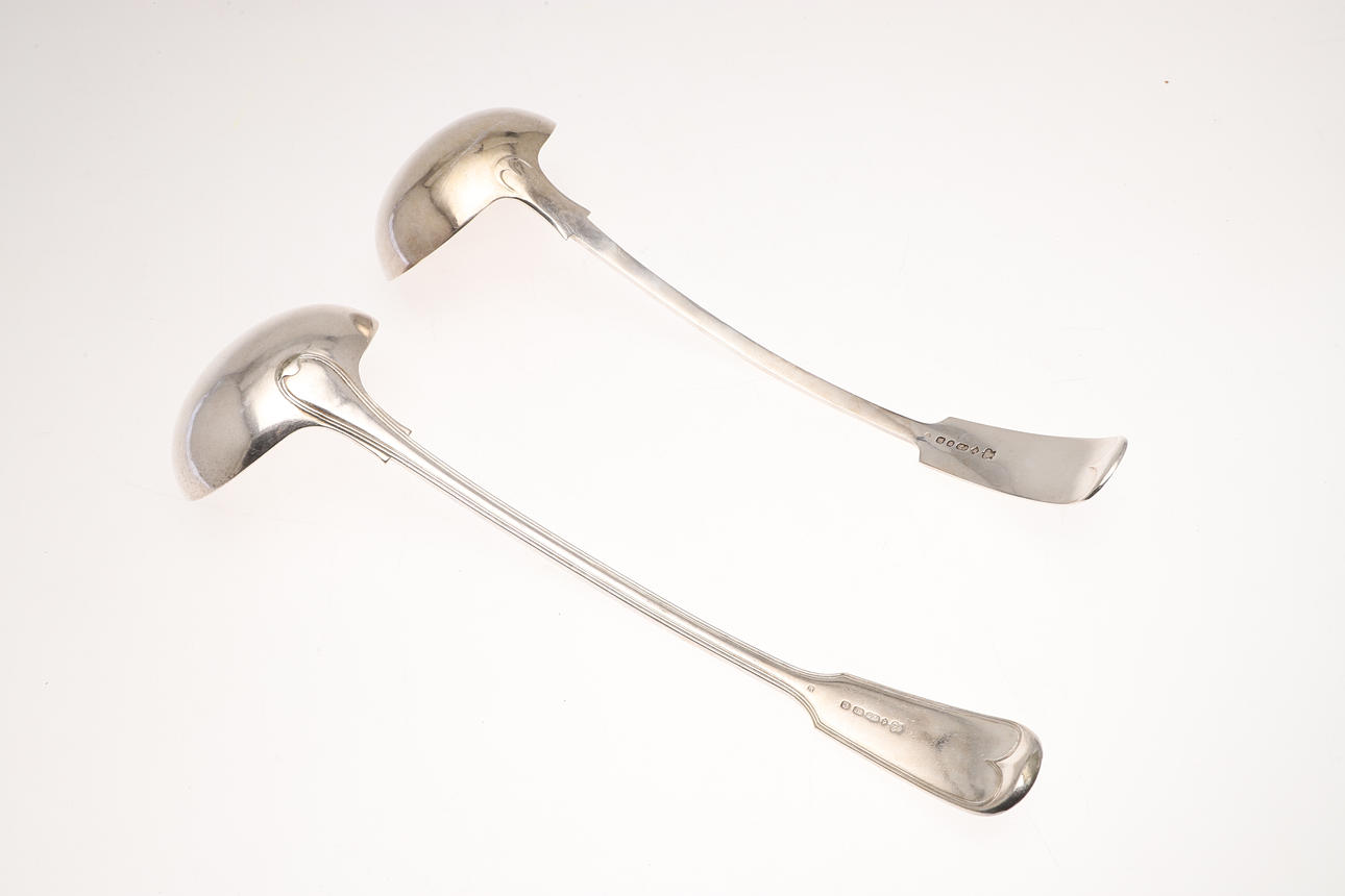 One Fiddle pattern with engraved monogram to the handle, one Fiddle and Thread pattern with engraved crest to the handle. Similar size, length 33cm. (2).