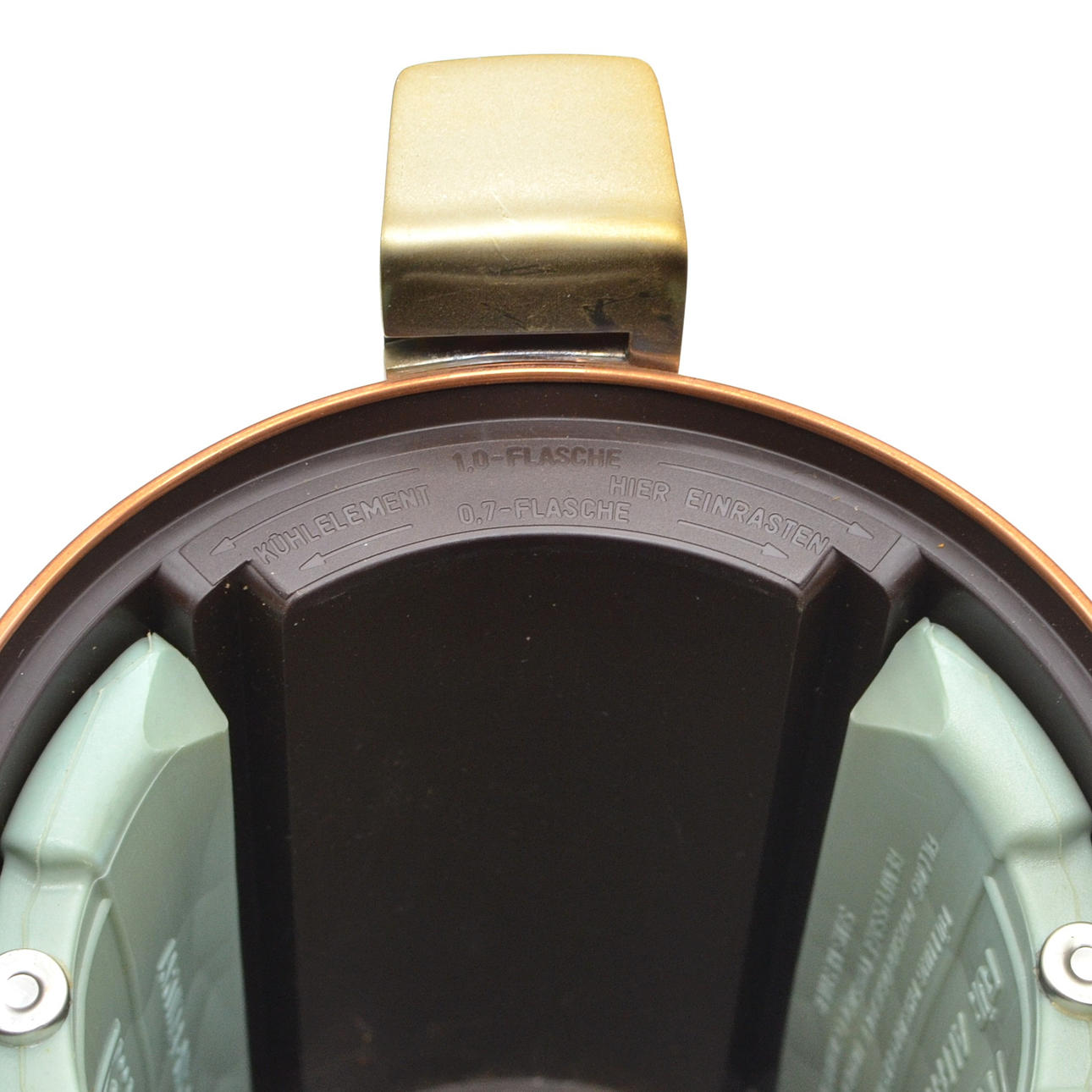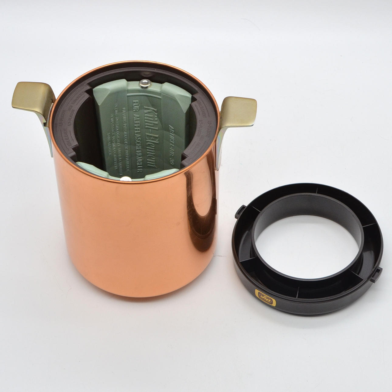 4937593. ALFI, BOTTLE COOLER WITH COOLING ELEMENTS, BRASS AND PLASTIC, WITH INSTRUCTIONS AND ICE TONGS, GERMANY CIRCA 1970S.