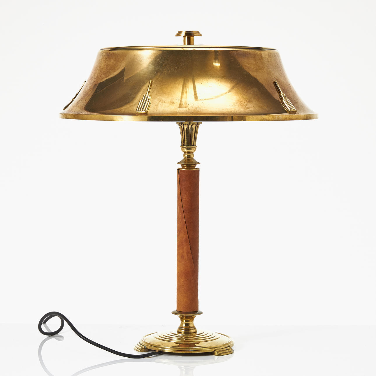 4937612. BORÉNS. Table lamp, 1950s, model 8411, brass and leather.