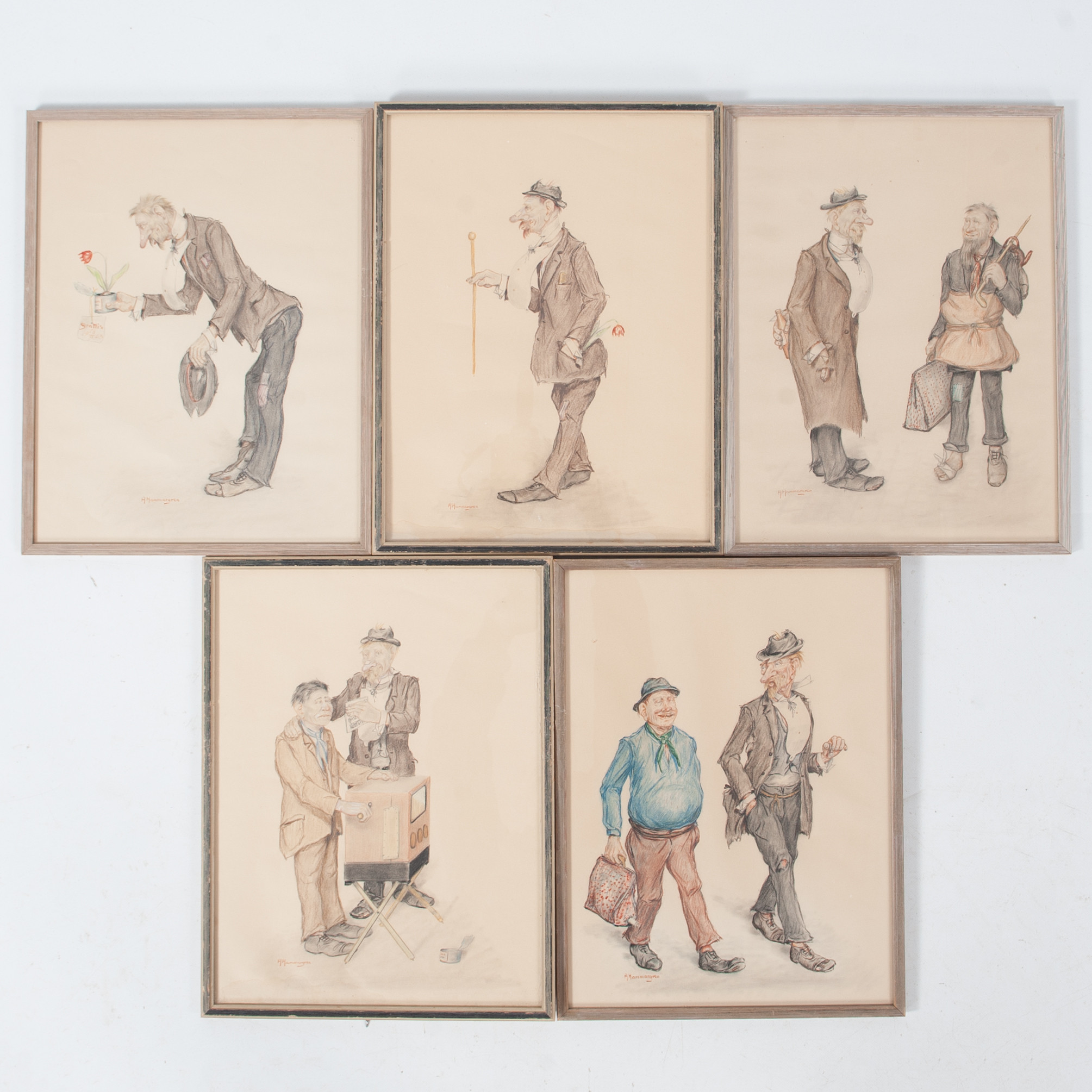 4937666. ANDERS HAMMARGREN. Drawings, 5 pieces, caricatures, signed.