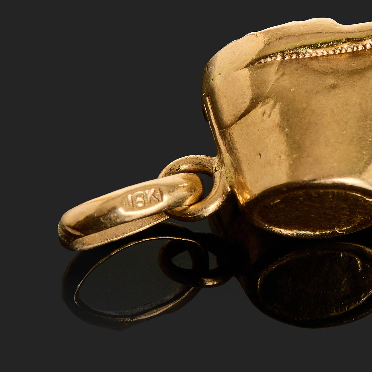 Tests positive at 18k. A pendant stamped 18k. Total weight approx. 8.4 g.