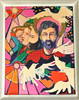 Ian Gregory 1985 painting on board of 4 saints with doves - frame 80cm x 64cm x 6cm deep.