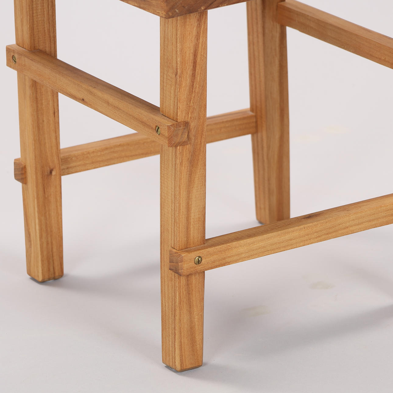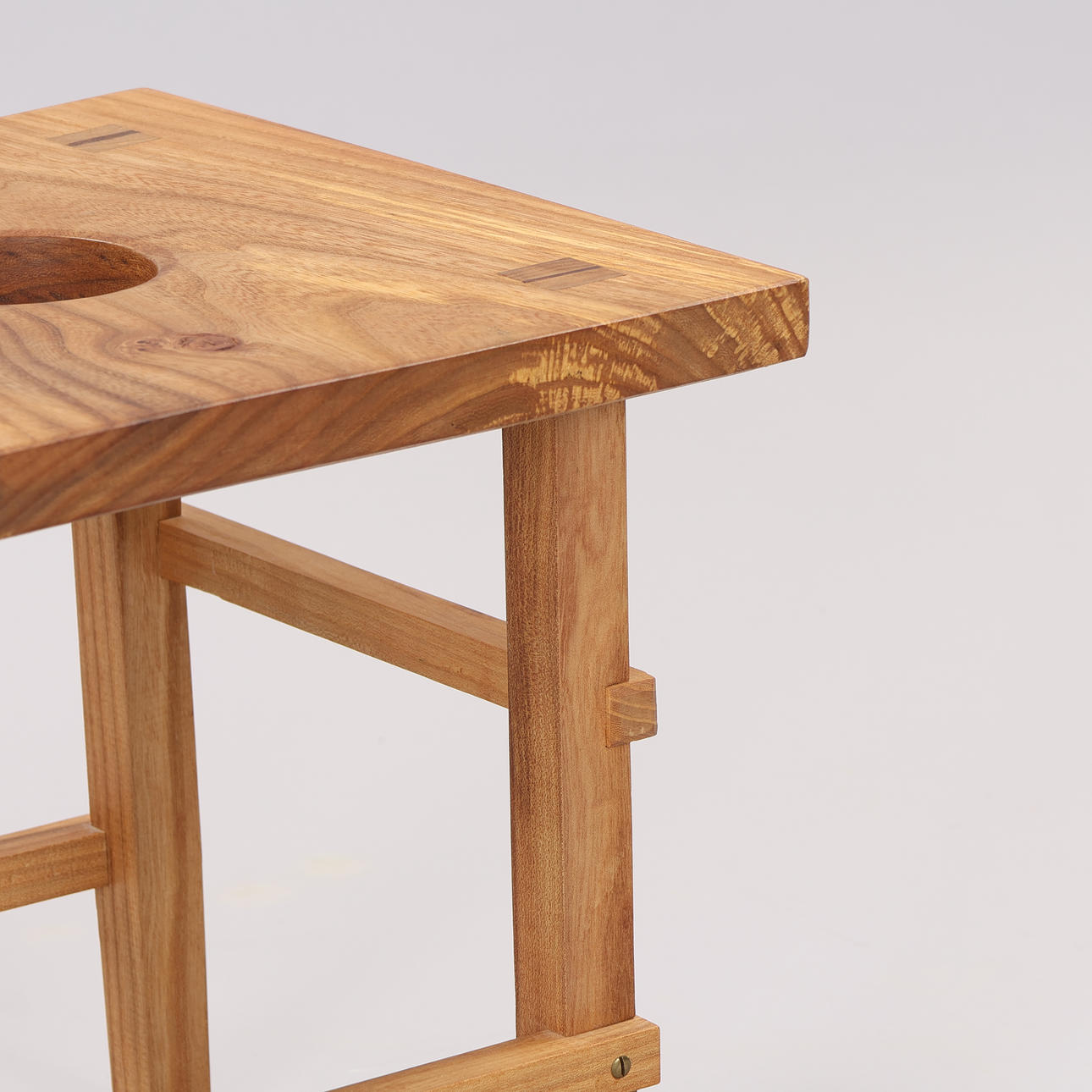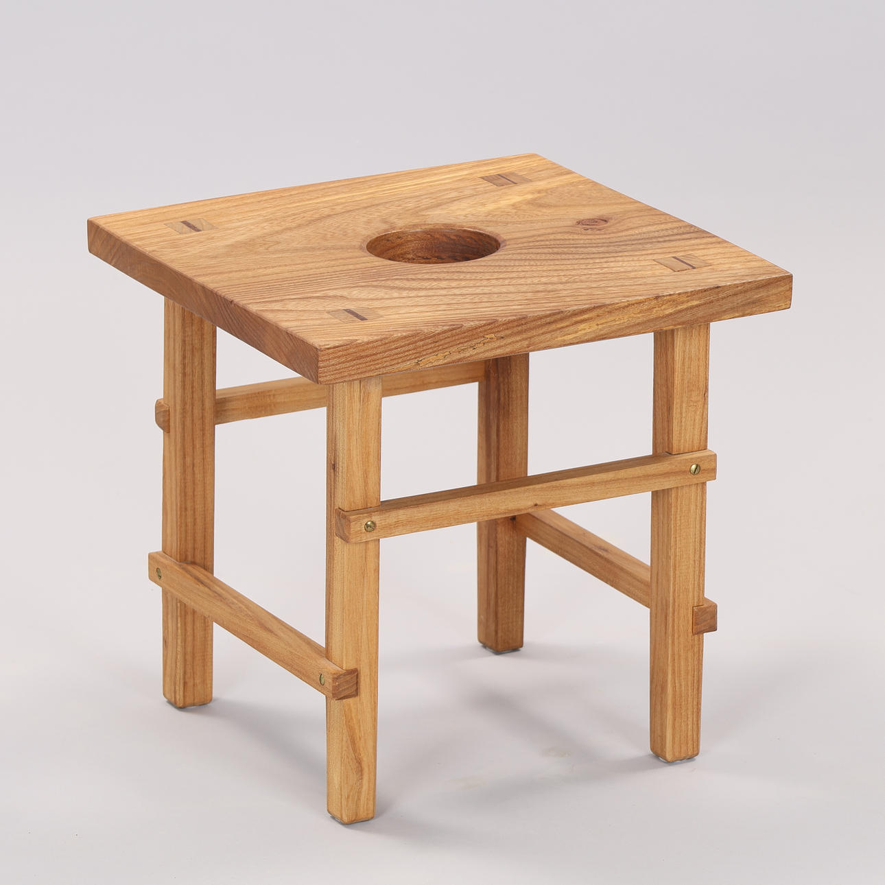 Stool in solid elm with visible mortise and tenon joints. Presumably crafted by a Scandinavian cabinetmaker.