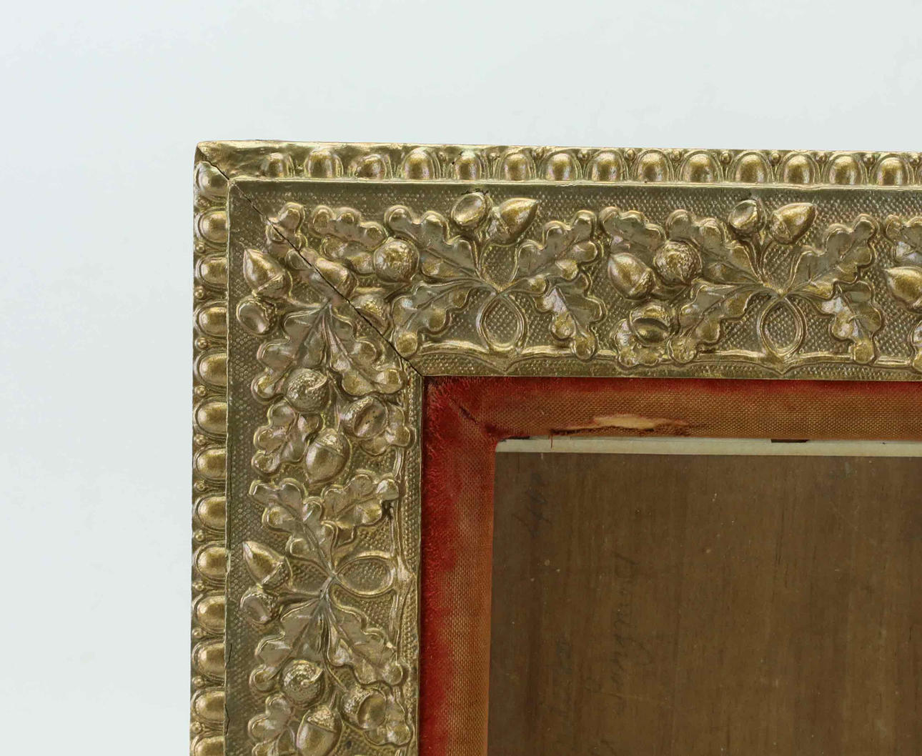 Gold-painted wood with decor of acorns, red velvet in the inner frame. 41 x 36 cm.