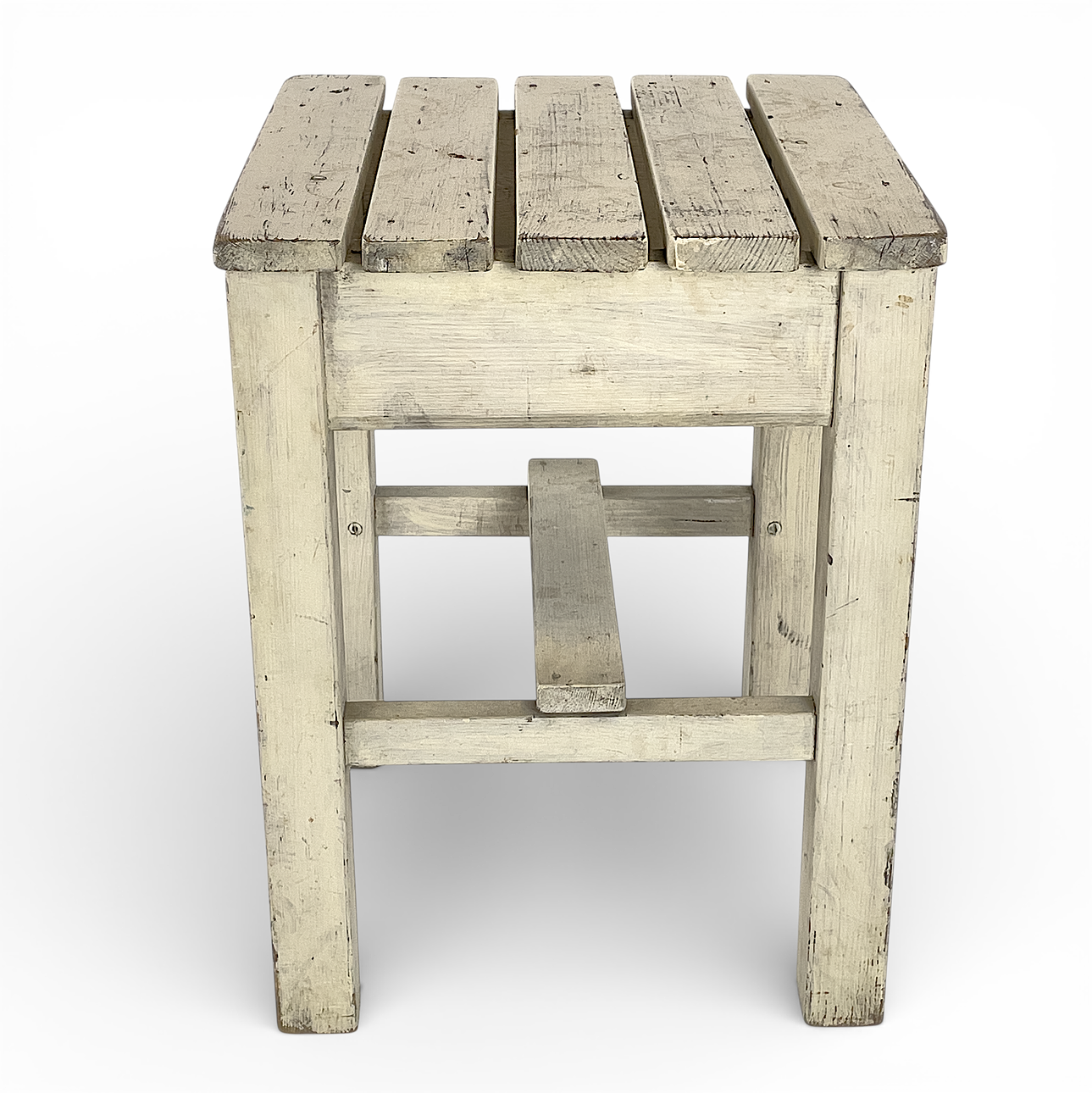 1 pc stool in white painted wood. Height approx. 43 cm, width approx. 34 cm, depth approx. 32 cm.