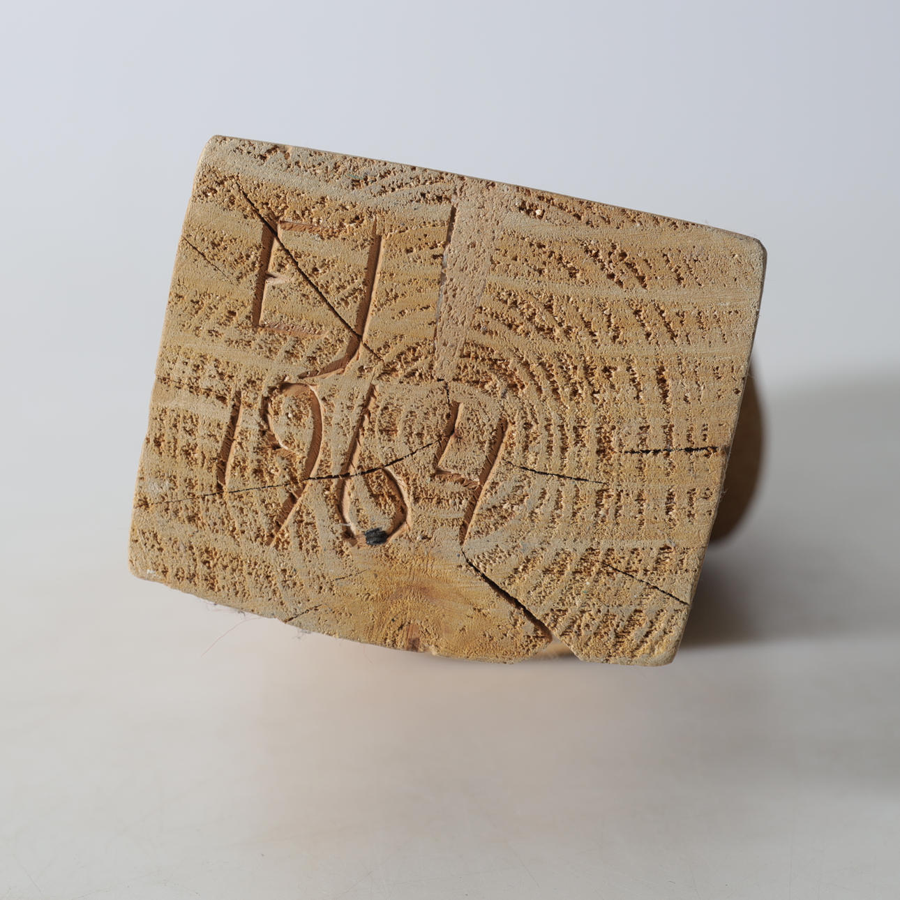 4938122. FIGURINE, carved wood, monogram signed EJ & dated 1961.