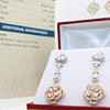 A pair of fine quality and certified white and rose gold (stamped) diamond drop earrings.