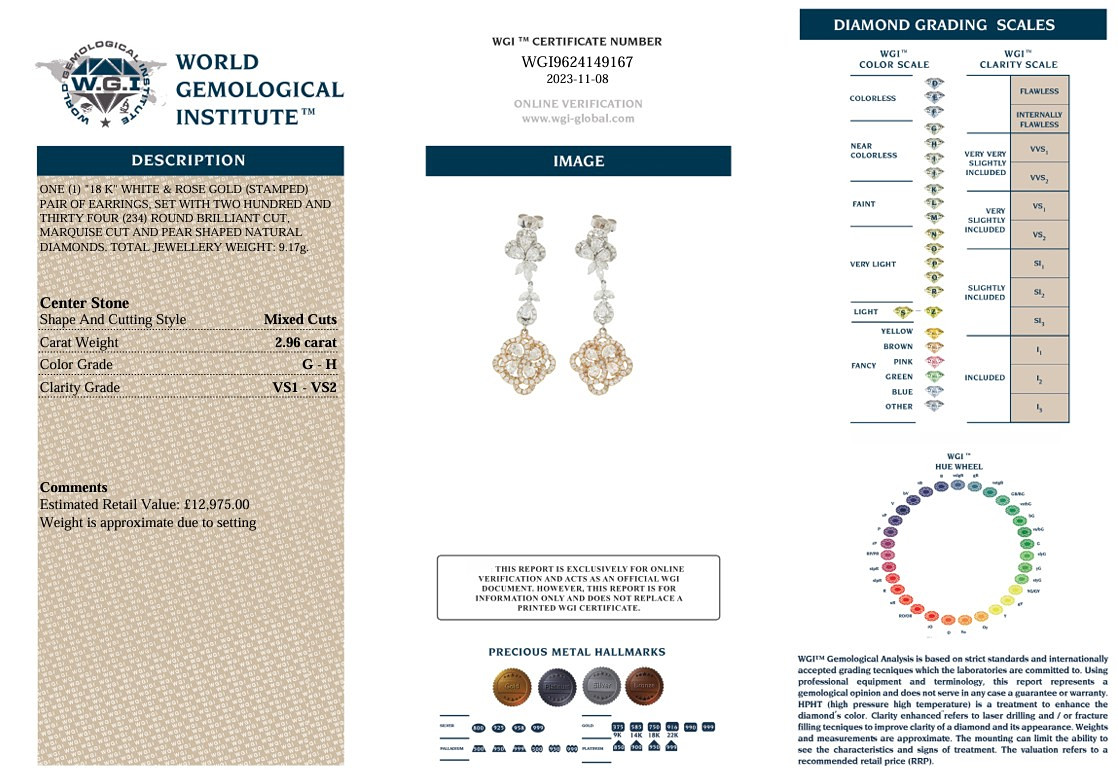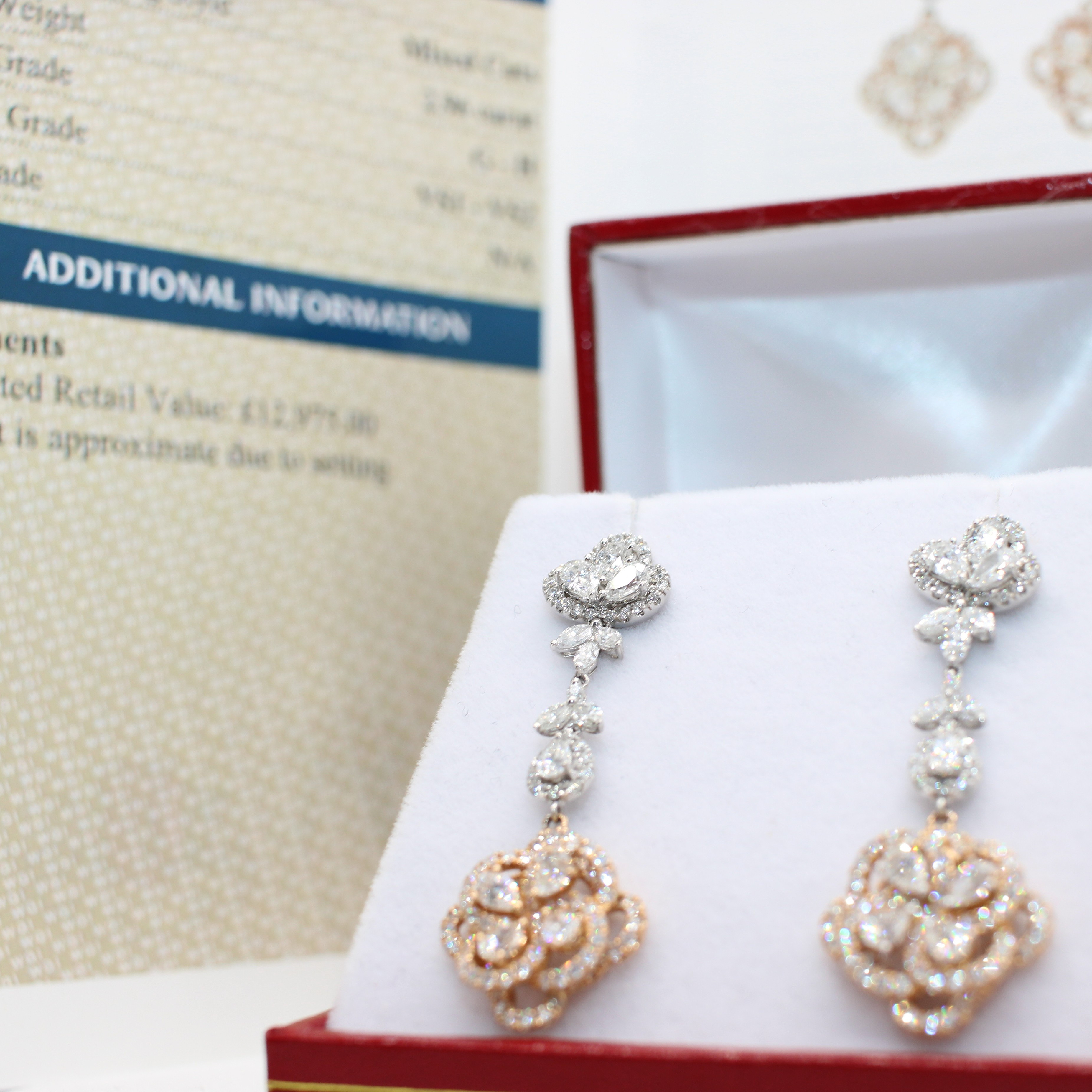 4938184. 2.96CT DIAMOND DROP EARRINGS CERTIFIED.