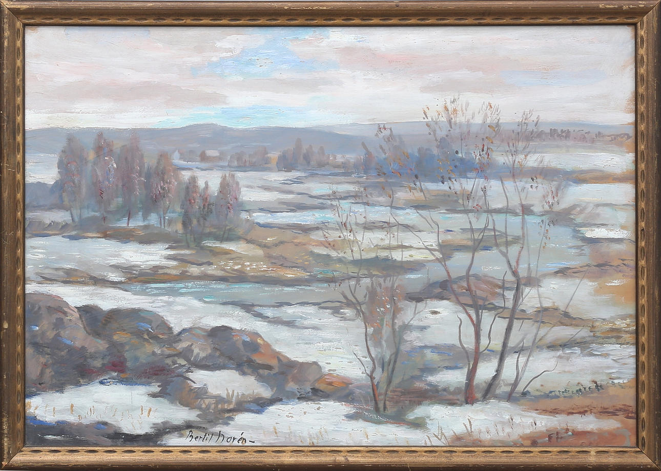 4938489. BERTIL NORÉN. Spring Winter Landscape. Gouache, signed.