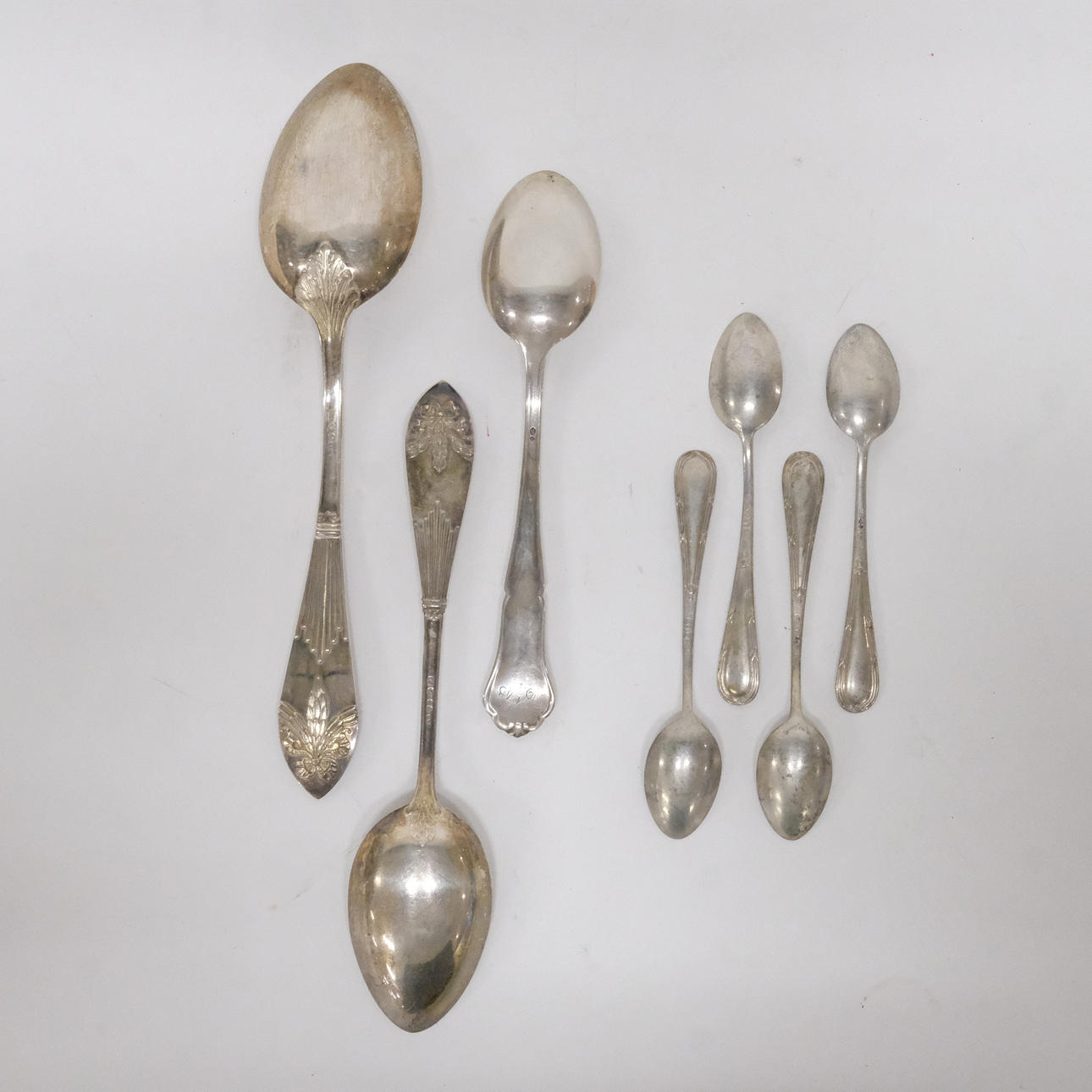 J. Petterssons eftr. Stockholm, 4 spoons, length 11 cm, GAB, Stockholm, spoon, length 18 cm, C.G. Hallberg Stockholm, spoon length 21 cm and spoon, length 16 cm, weight approx. 175 grams.